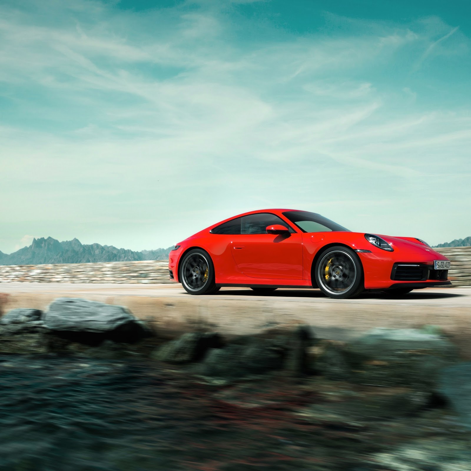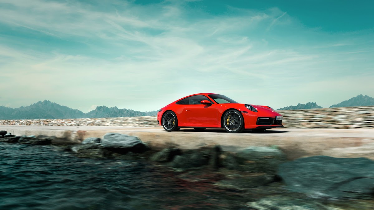 Porsche, Red Car, Seascape, Mountains 4K Desktop and Mobile Wallpaper Background with a maximum resolution of 3840x2160 px.