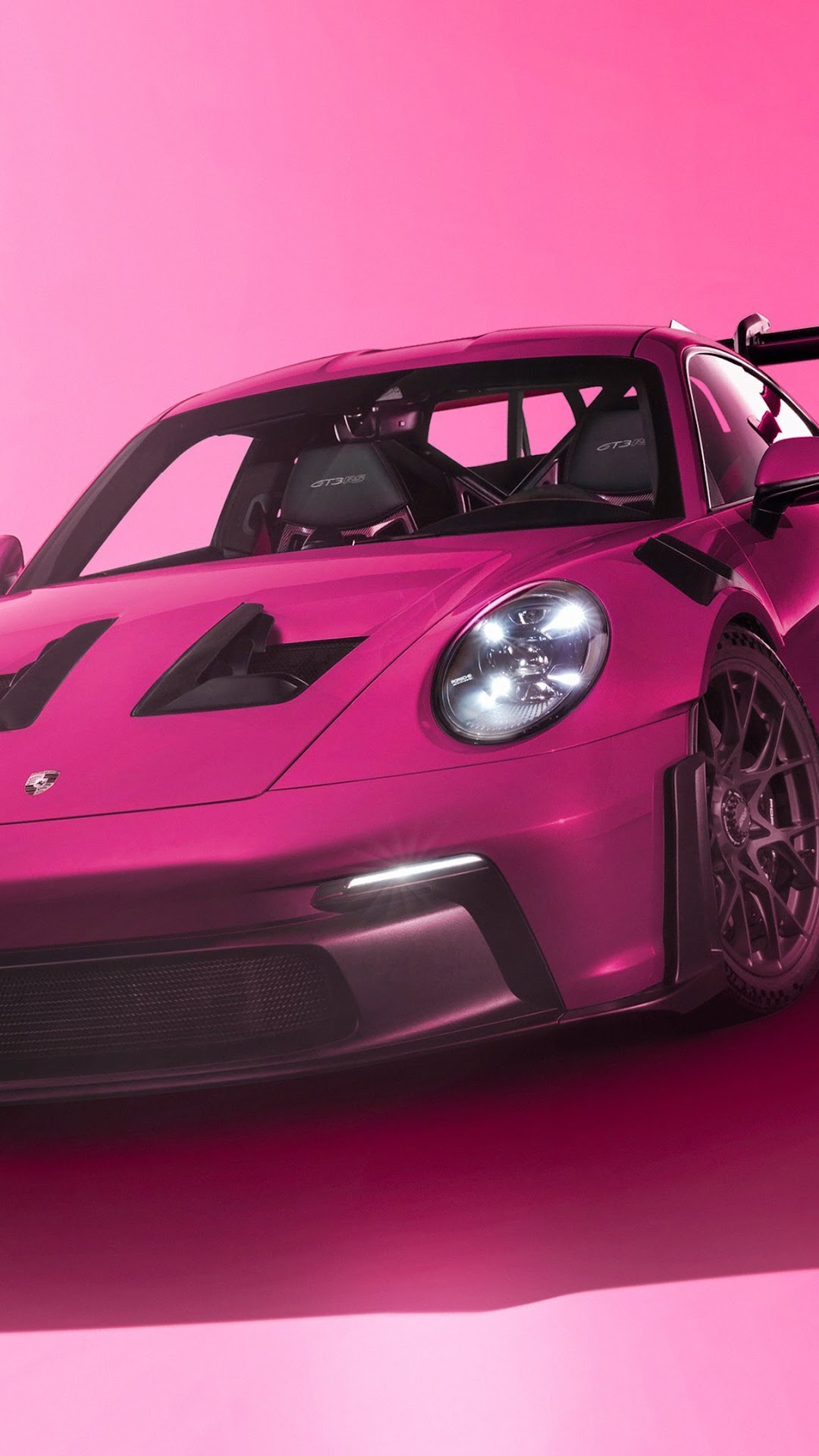 Porsche, GT3 RS, Pink, Sportscar 4K Desktop Wallpaper Background with a maximum resolution of 3840x2160 px.