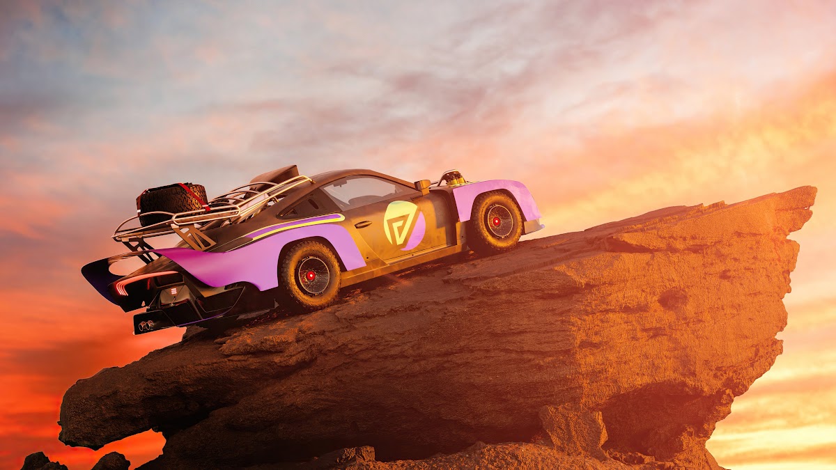 Cyberpunk, Car, Rock, Sunset, Futuristic 4K Desktop Wallpaper