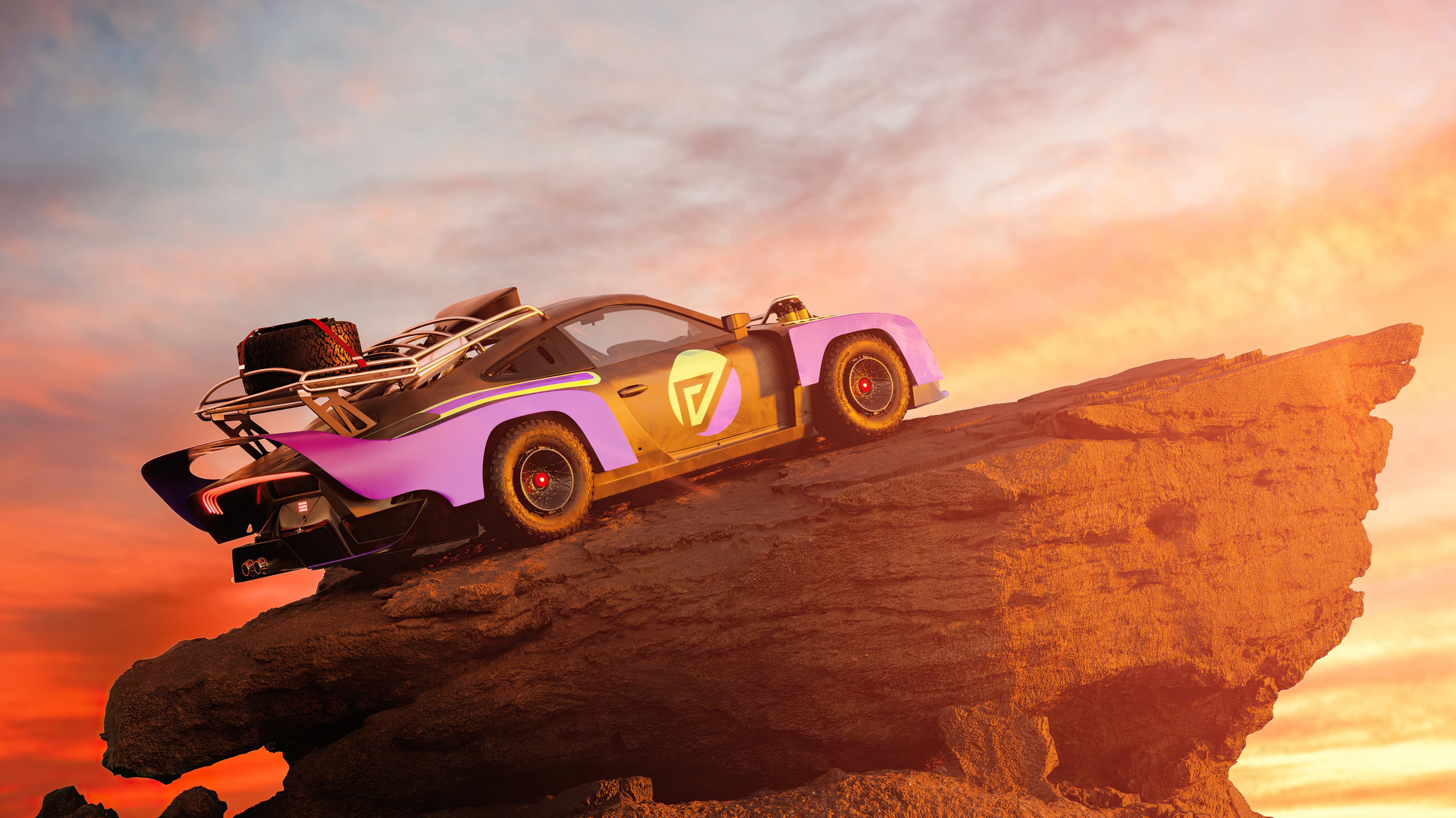 Cyberpunk, Car, Rock, Sunset, Futuristic 4K Desktop Wallpaper