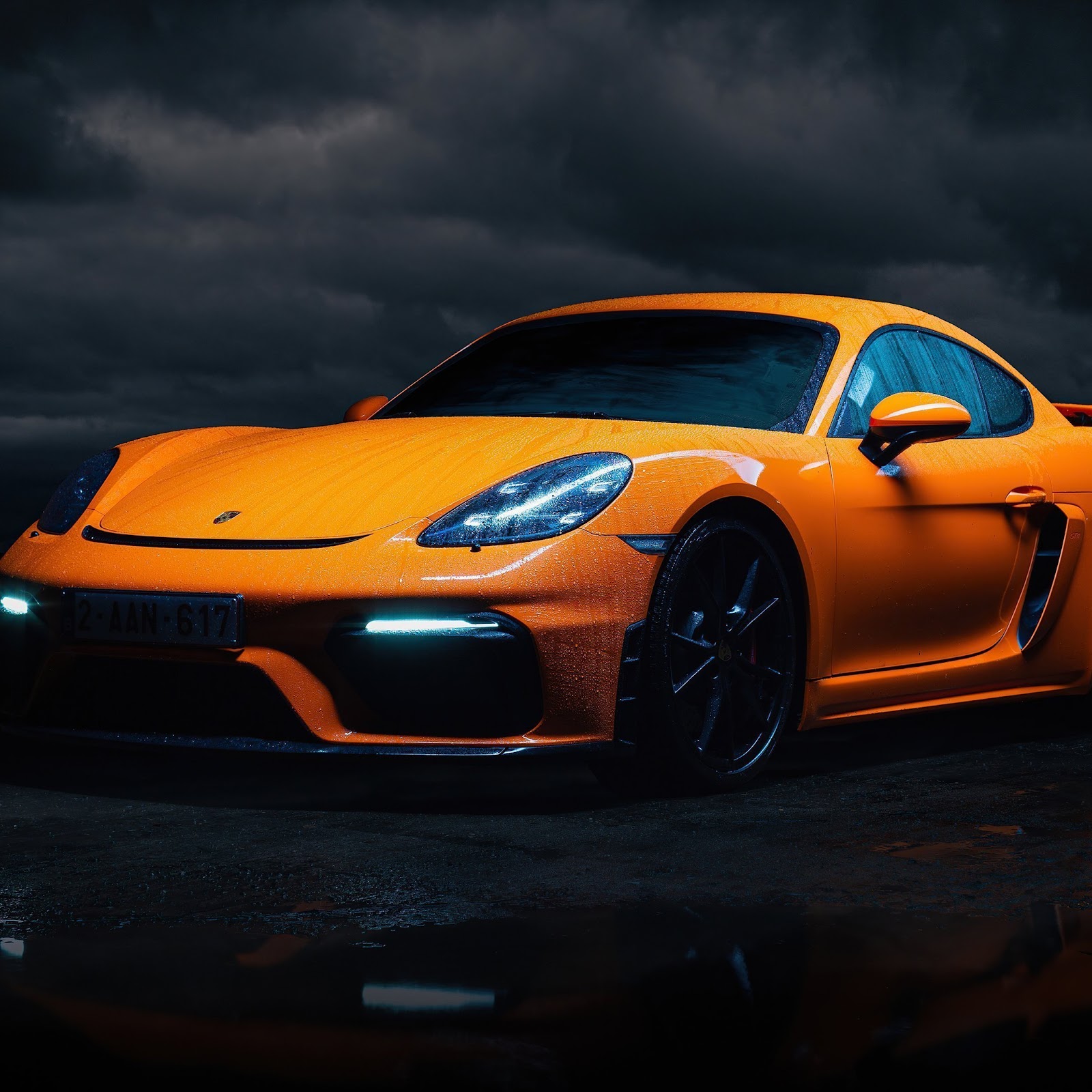 Porsche, Cayman, Gt4, Orange, Car 4K Desktop and Mobile Wallpaper Background with a maximum resolution of 3840x2160 px.
