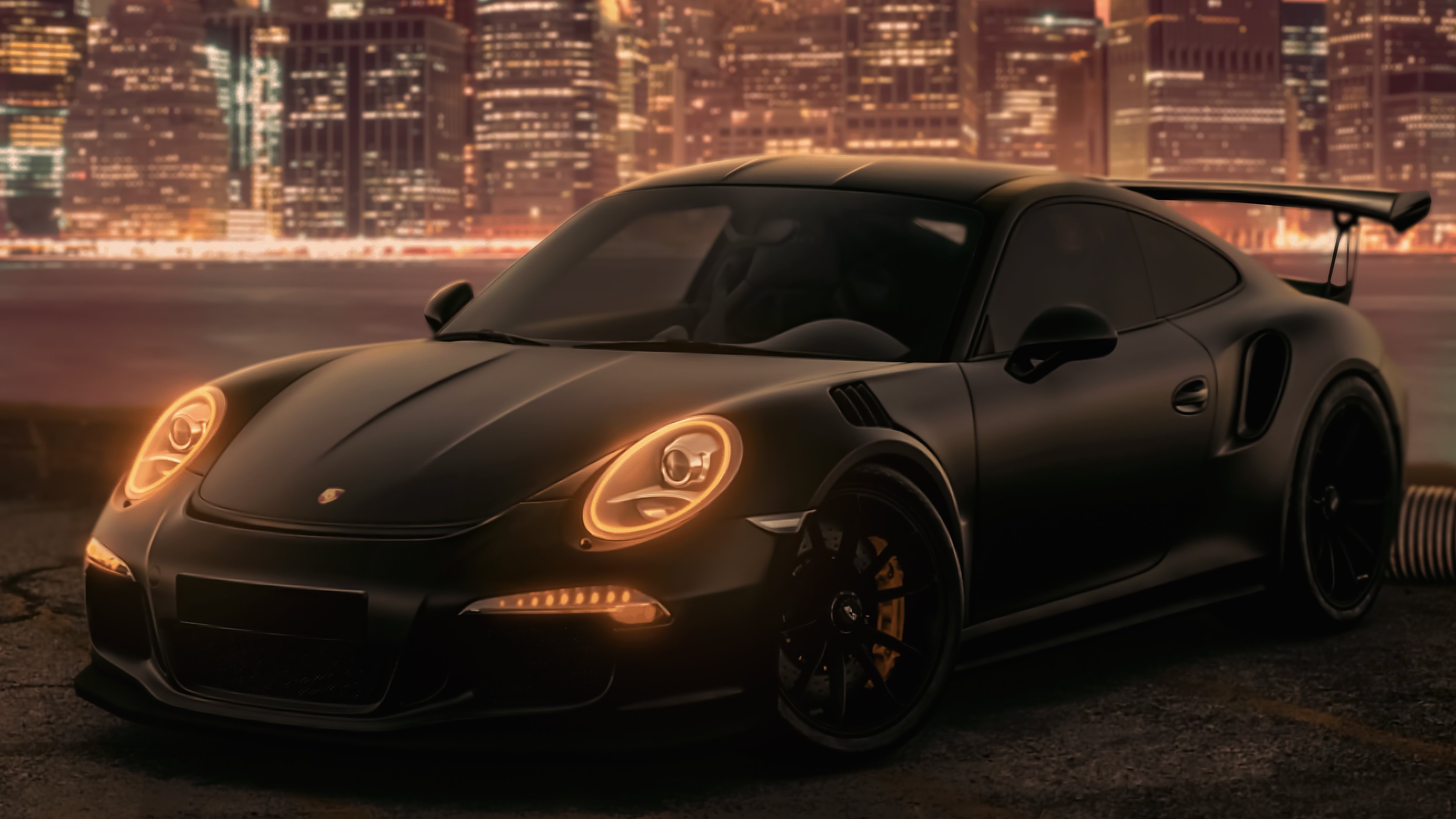 Porsche, Gt3 Rs, Matte Black, Cityscape 4K Desktop Wallpaper