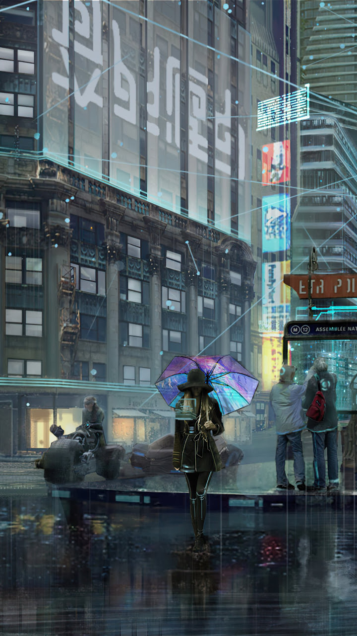 Cyberpunk, Futuristic, Cityscape, Rainy 4K Desktop Wallpaper Background with a maximum resolution of 3840x2160 px.
