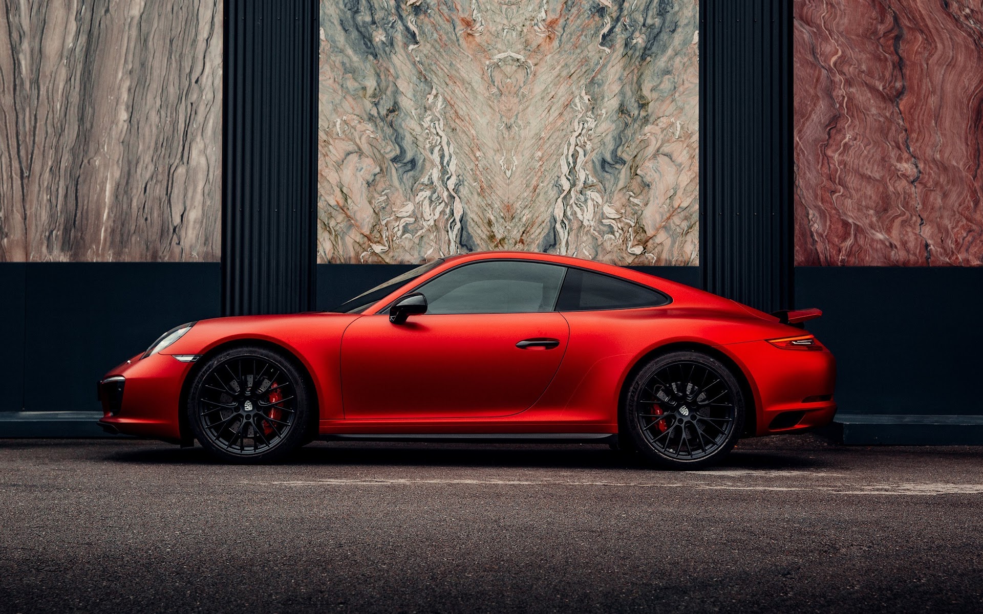 Porsche, Red, Carrera, Marble 4K Desktop and Mobile Wallpaper Background with a maximum resolution of 3840x2160 px.