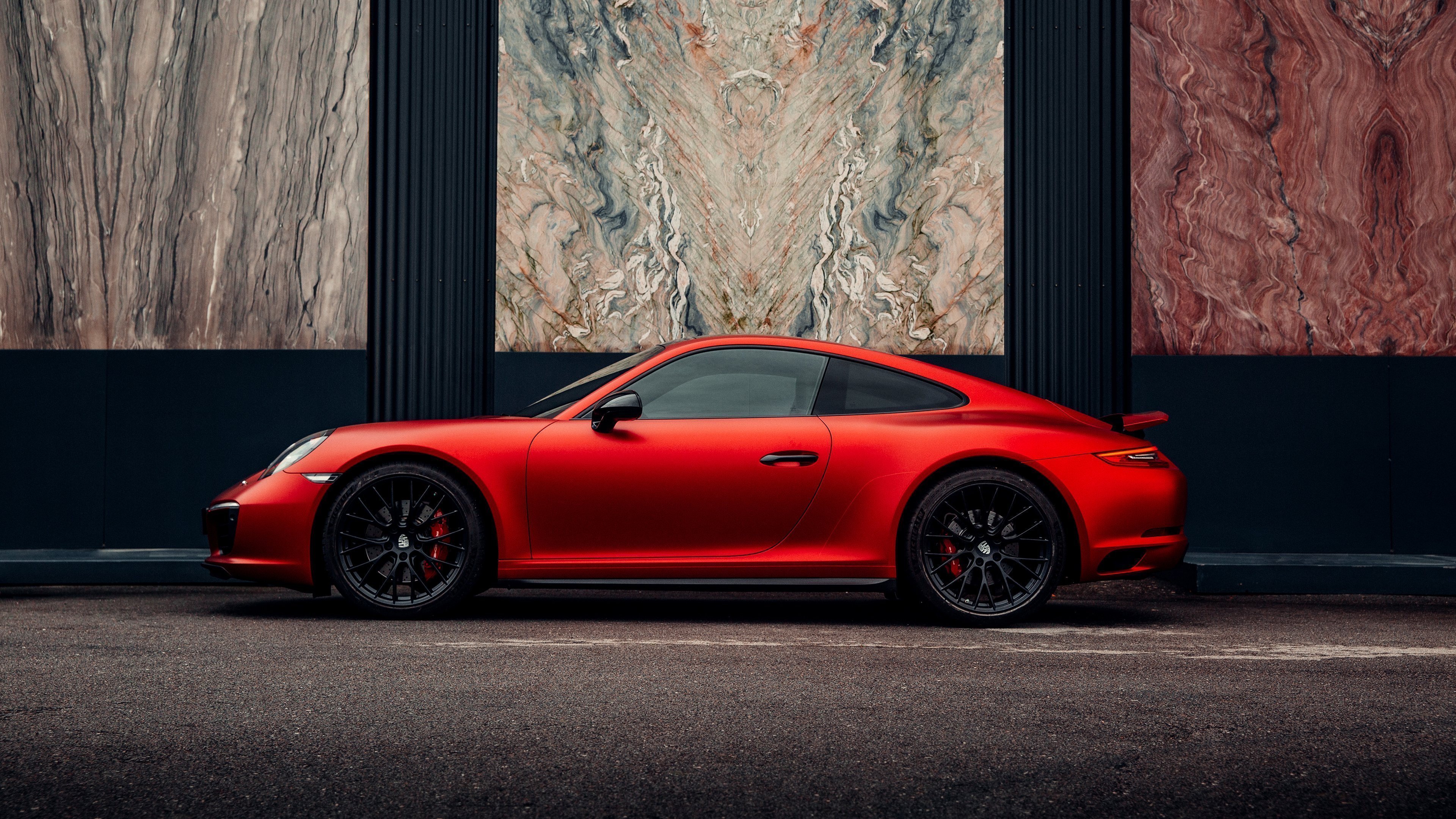 Porsche, Red, Carrera, Marble 4K Desktop and Mobile Wallpaper Background with a maximum resolution of 3840x2160 px.