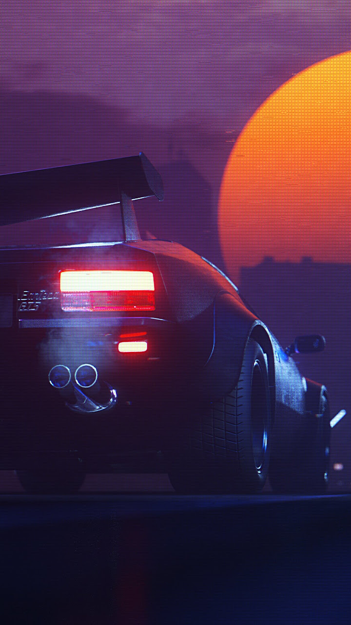 Outrun, Synthwave, Sunset, Retro 4K Phone Wallpaper