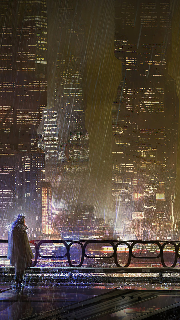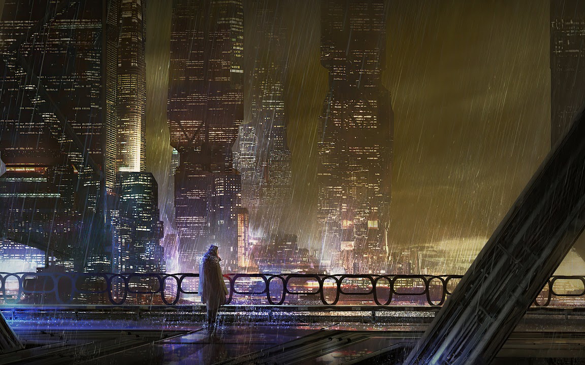 Scifi City Rain 4K Desktop Wallpaper Background [3840x2160] Free Download