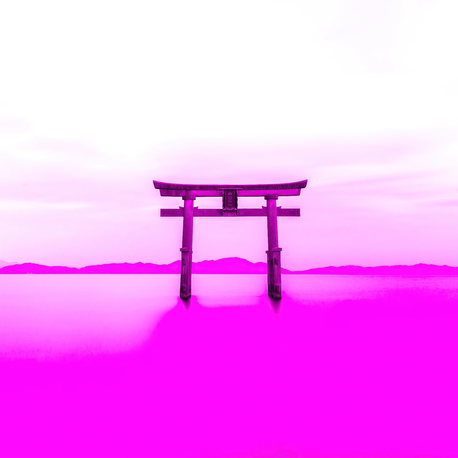 Shirahige Shrine Vaporwave 4K Desktop Wallpaper Background with a maximum resolution of 3840x2160 px.