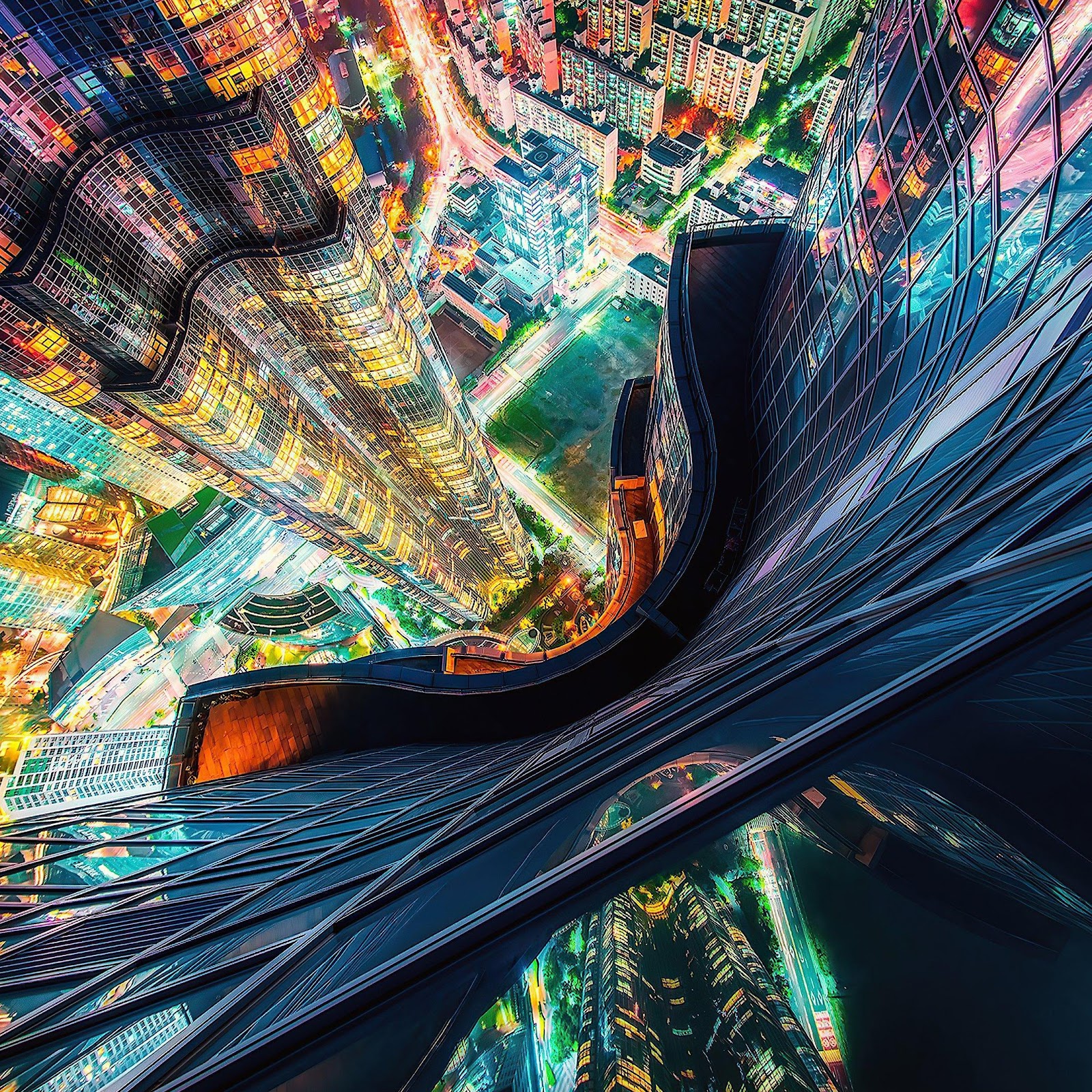 Skyscrapers, Nightscape, Urban, Architecture 4K Desktop Wallpaper Background with a maximum resolution of 3840x2160 px.