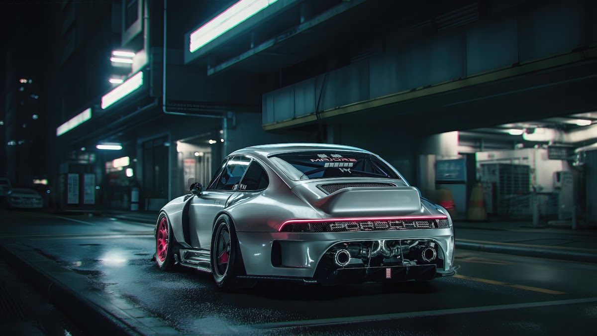 Porsche, RestoMod, Cyberpunk, Neon 4K Wallpaper Background with a maximum resolution of 3840x2160 px.