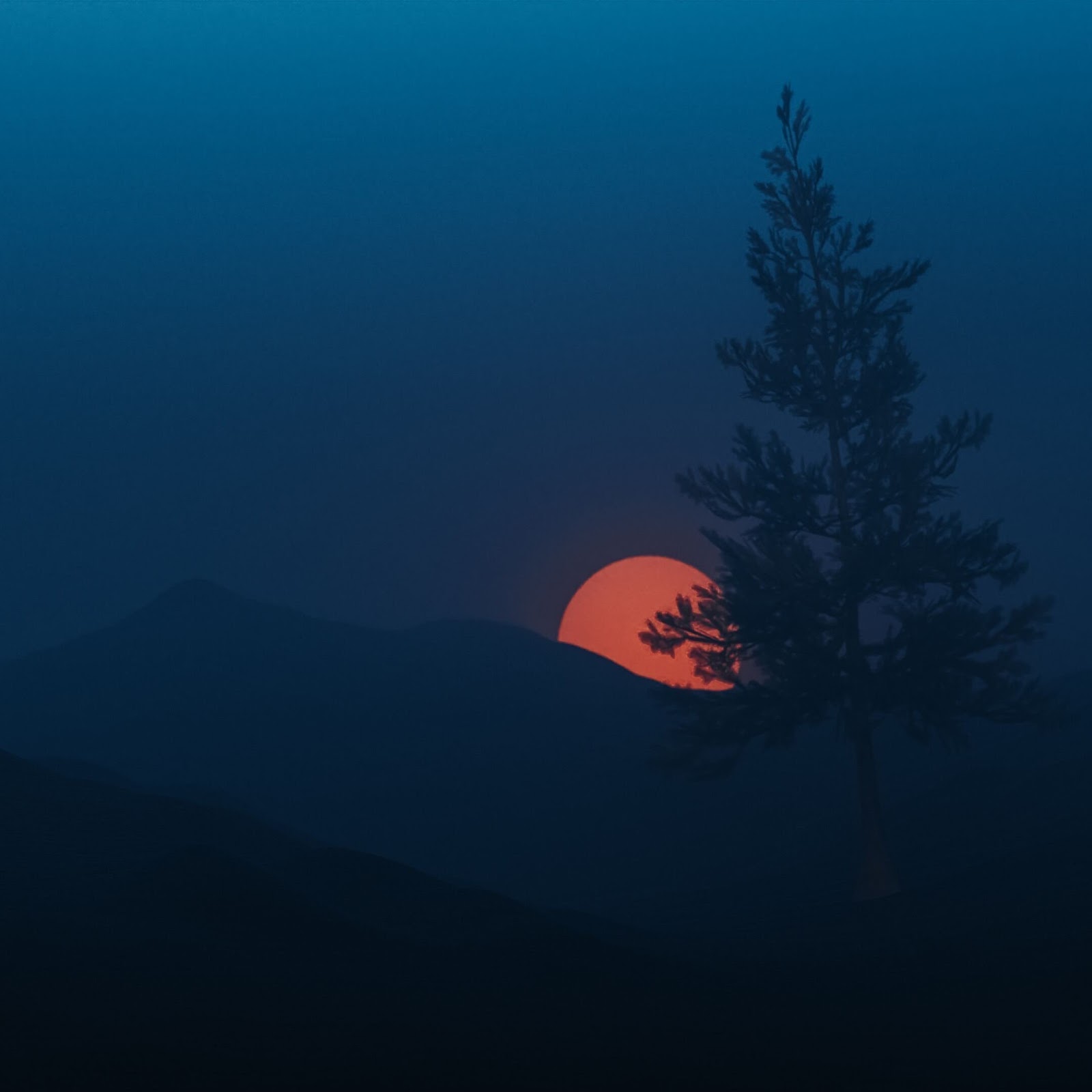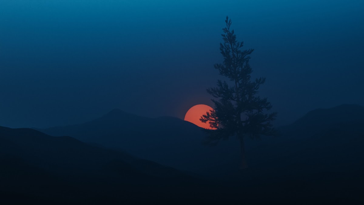 Sun Setting Behind Tree 4K Desktop Wallpaper