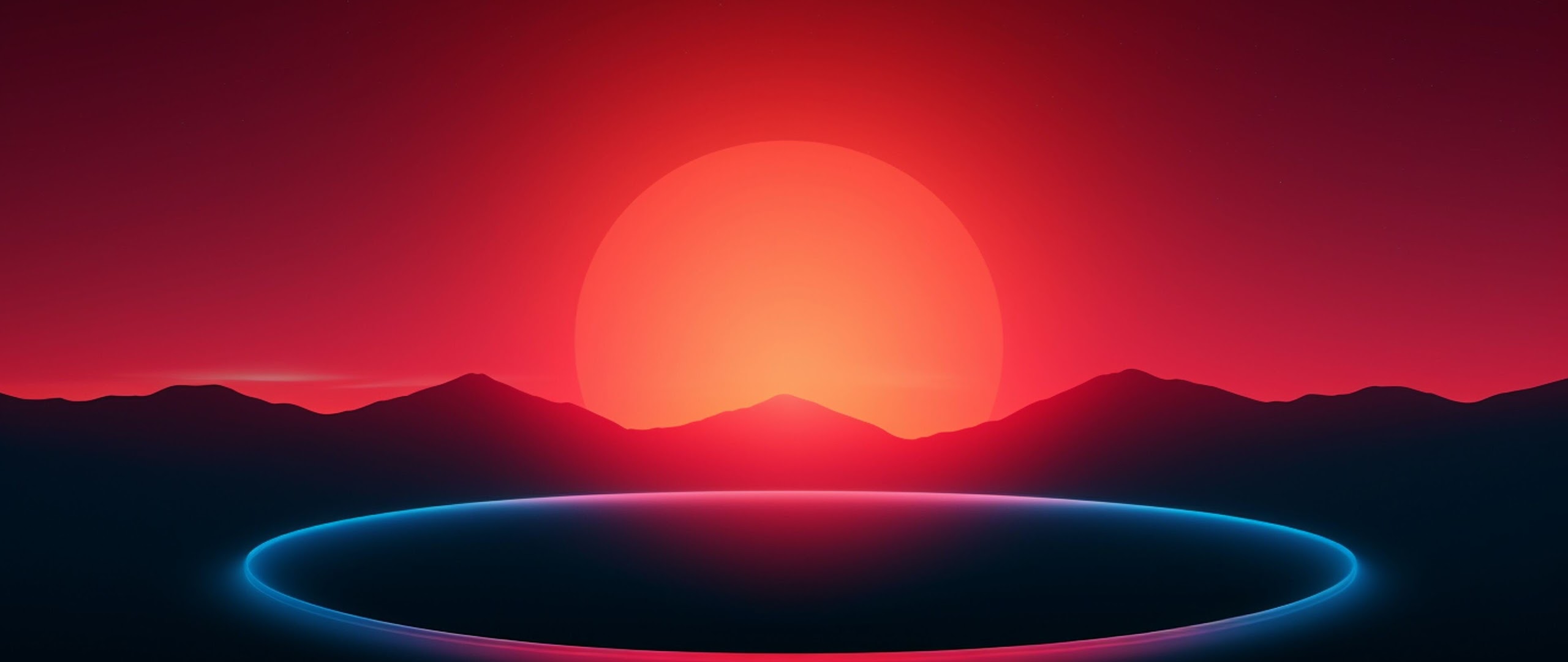 Sun Setting Over Mountains Neon Light 4K Desktop Wallpaper