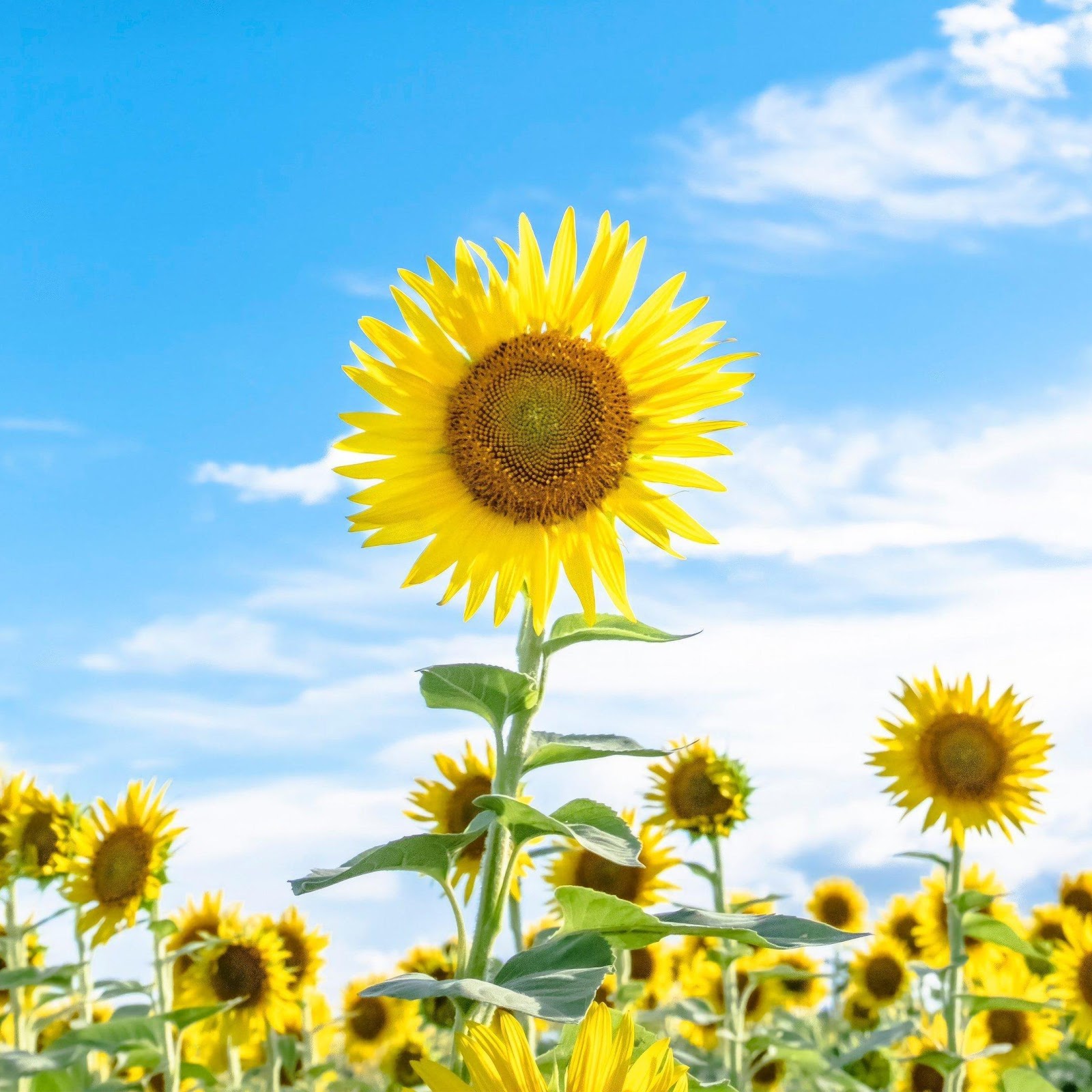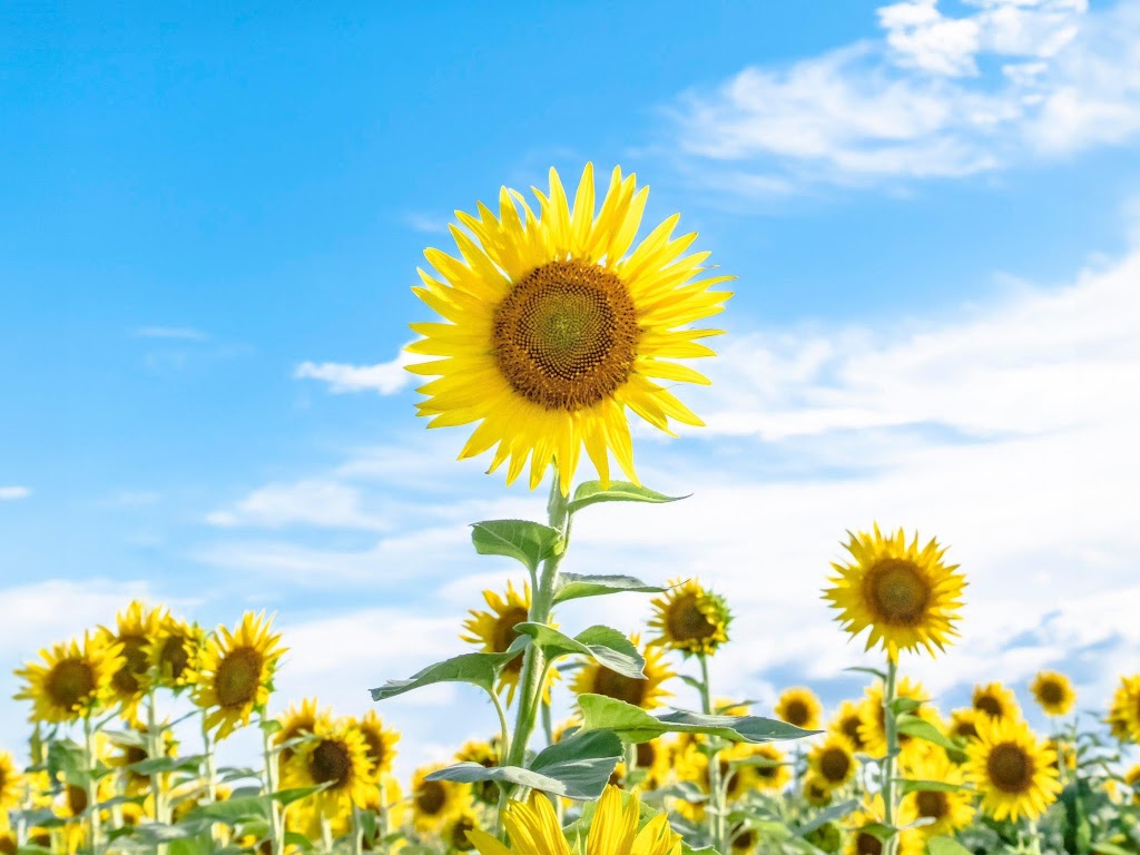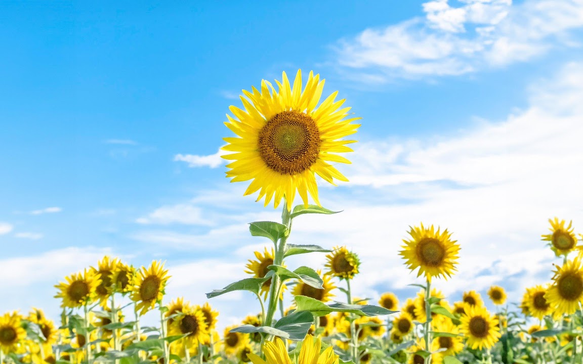 Sunflowers And Blue Sky Nature 4K Desktop Wallpaper Background with a maximum resolution of 3840x2160 px.
