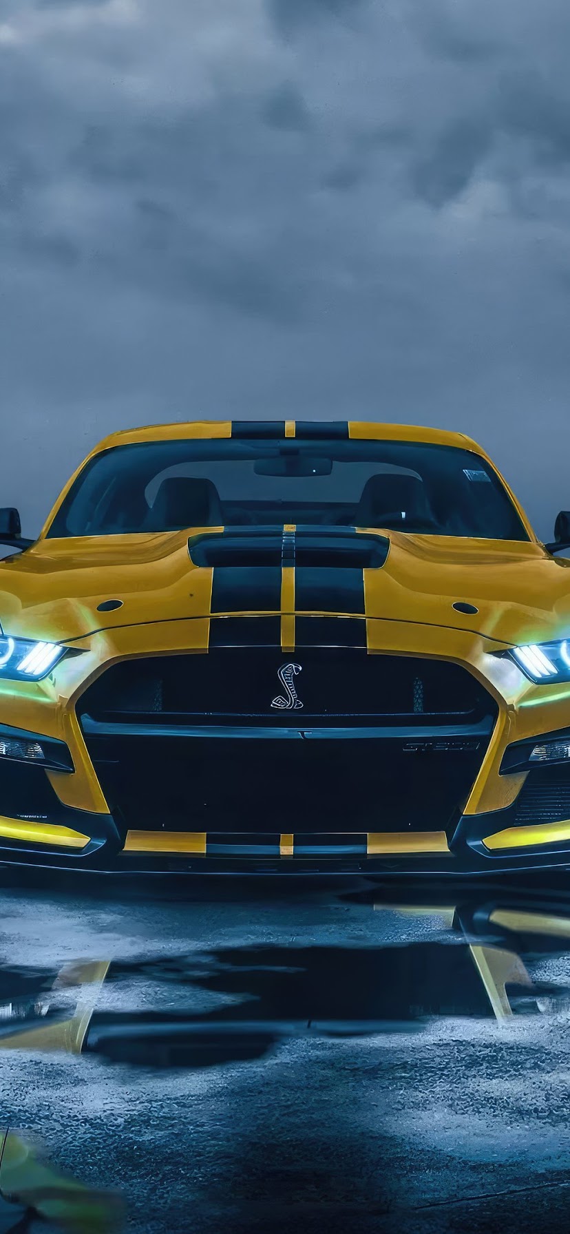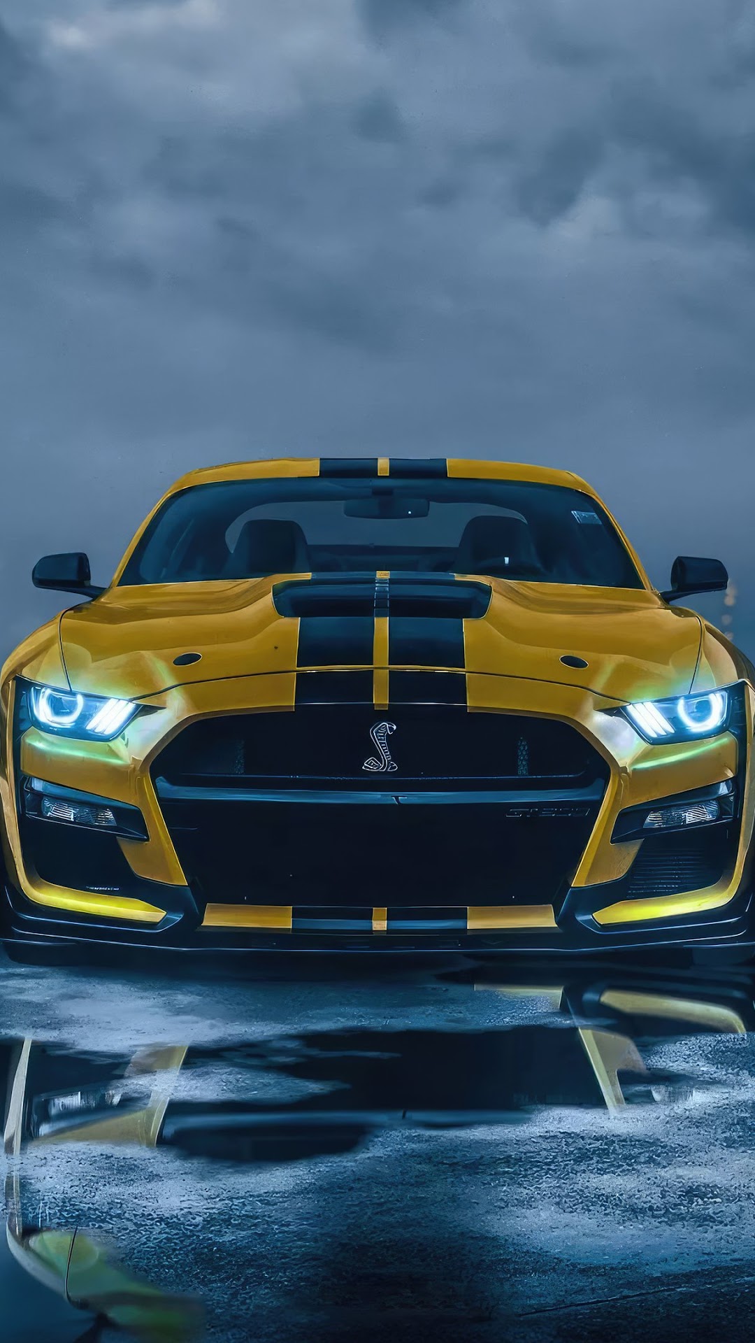 Shelby, Mustang, GT500, Yellow Car 4K Phone Wallpaper
