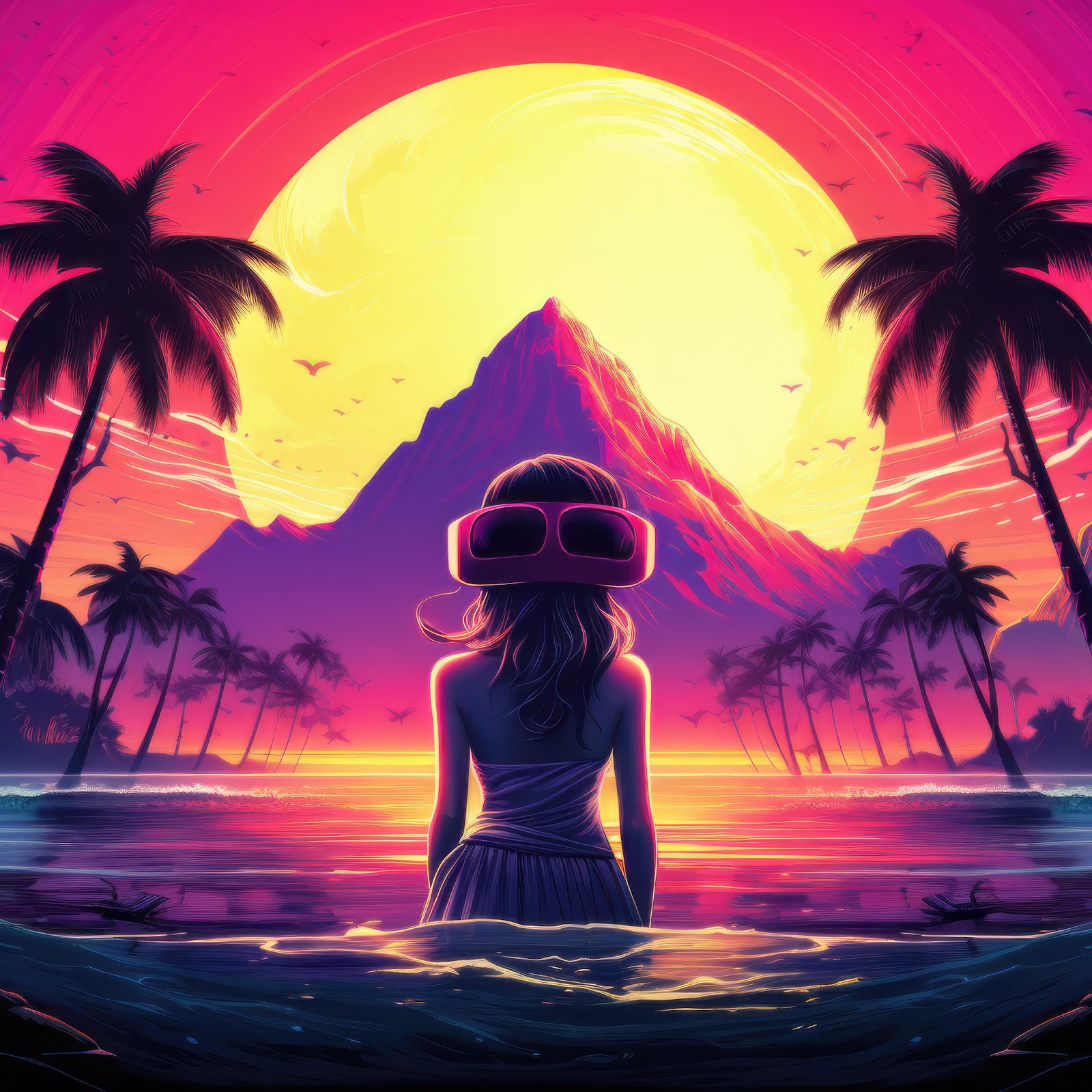Synthwave, Palms, Sunset, Ocean 4K Desktop Wallpaper Background [3840x2160] Free Download