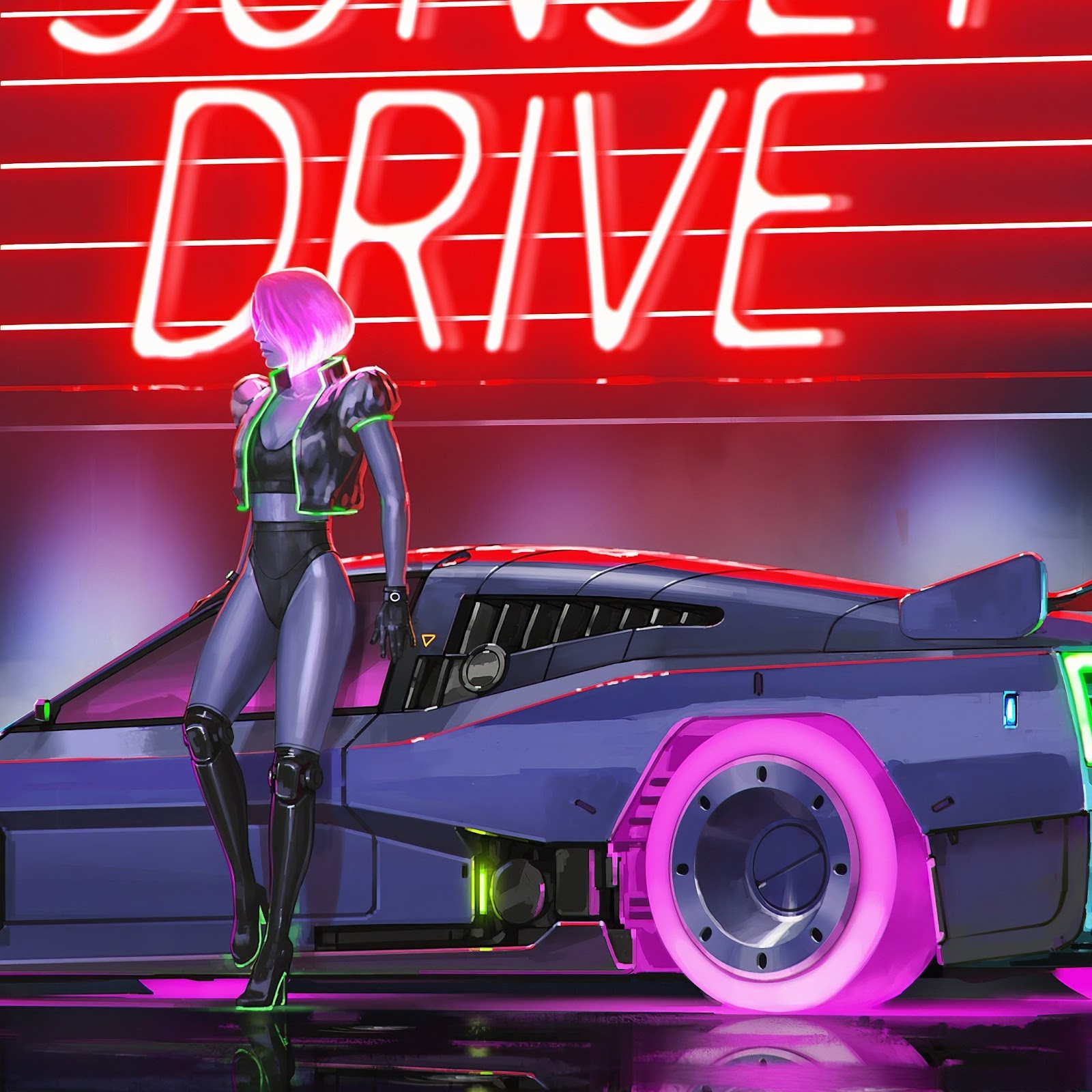 Sunset Drive Synthwave 4K Desktop Wallpaper