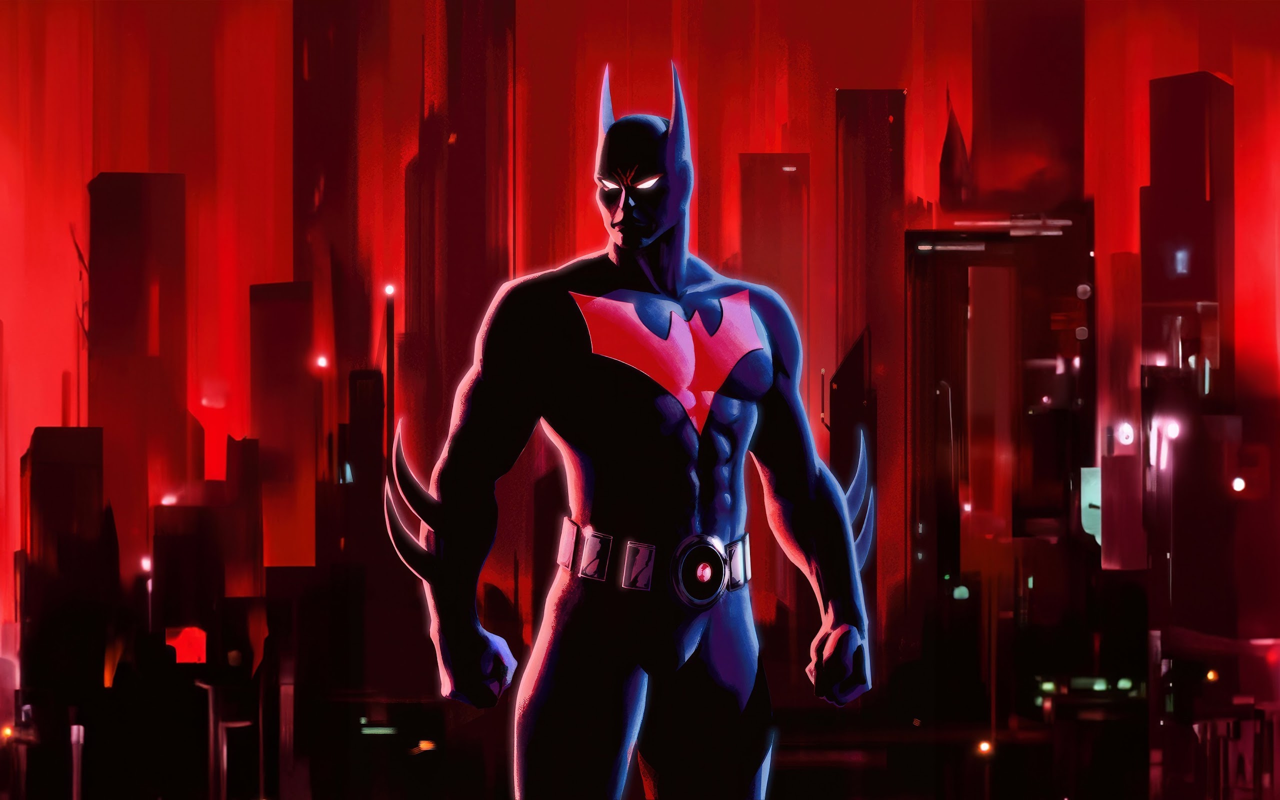 Batman Beyond, Gotham, Terry McGinnis, Red Cityscape 4K Desktop Wallpaper Background with a maximum resolution of 3840x2160 px.