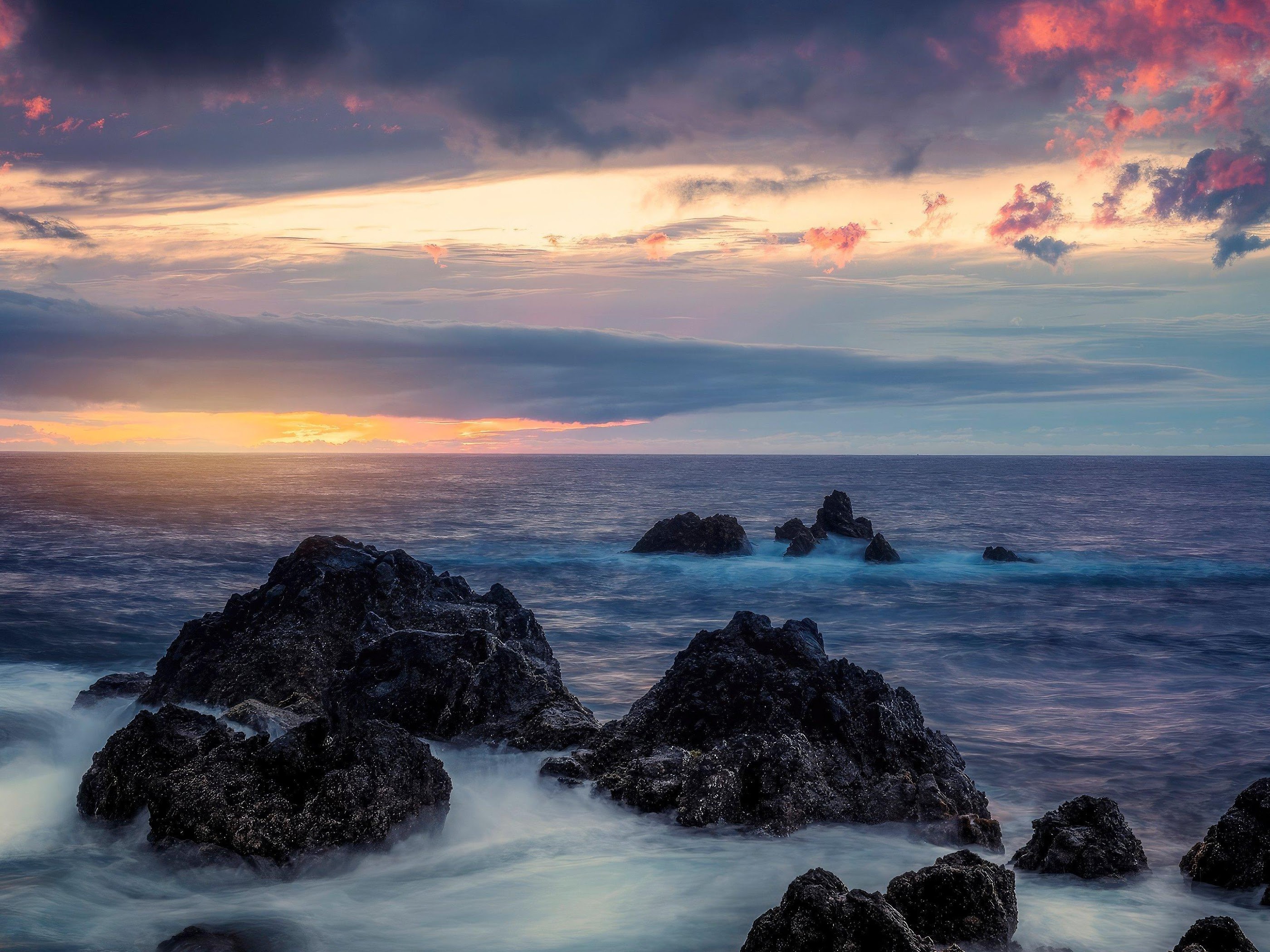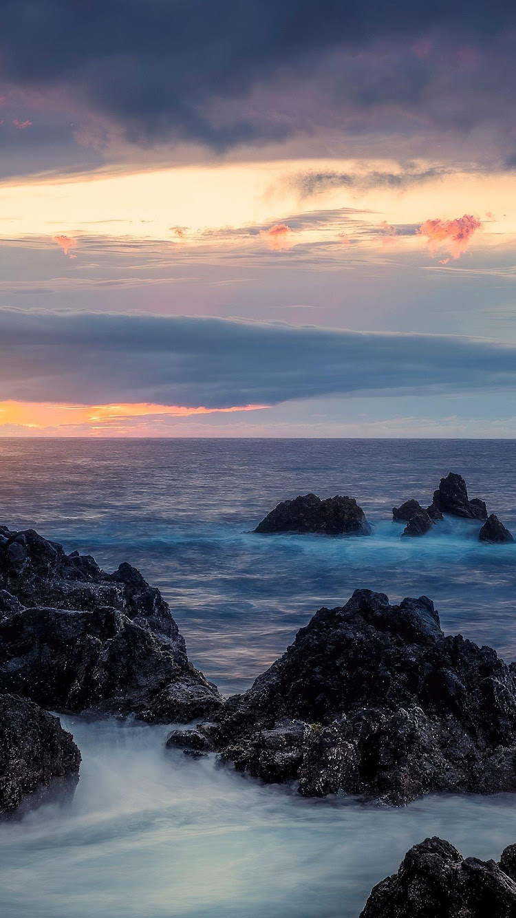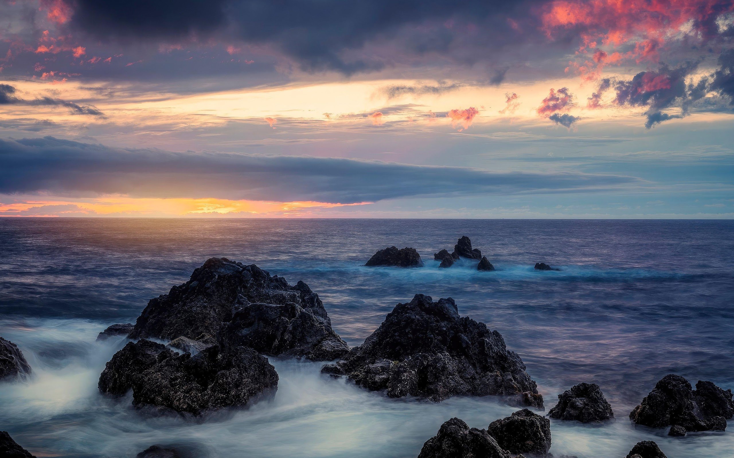 Tide Down Long Exposure Clouds Ocean Nature 4K Desktop Wallpaper