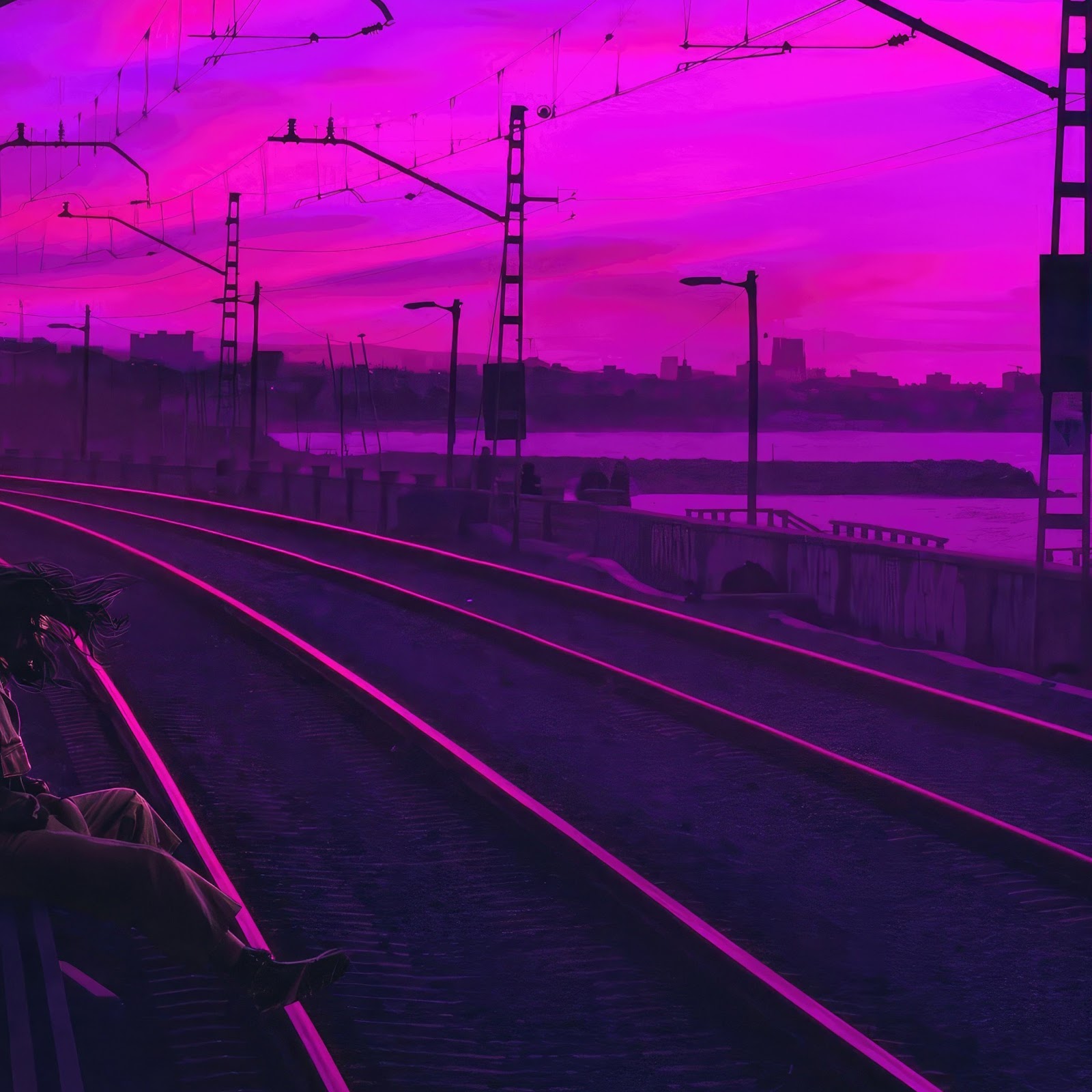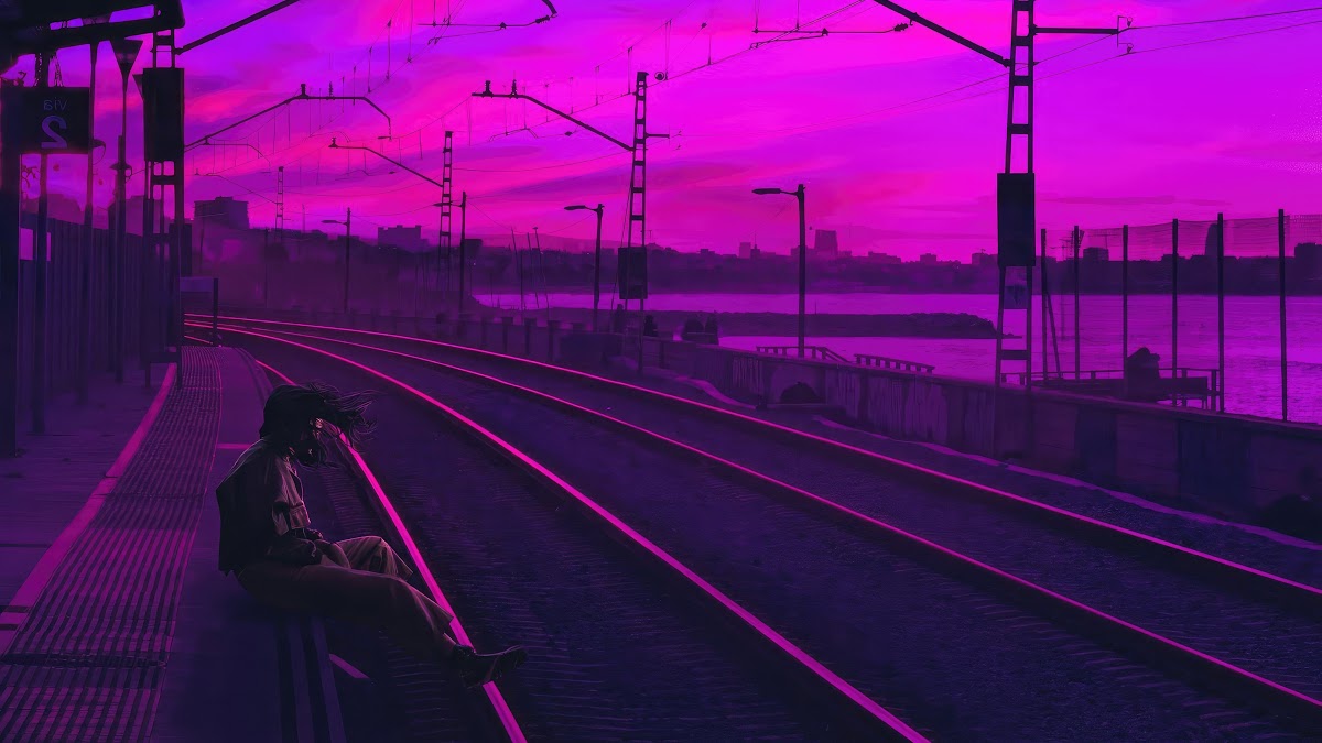 Synthwave, Railroad, Platform, Sunset 4K Wallpaper Background [3840x2160]