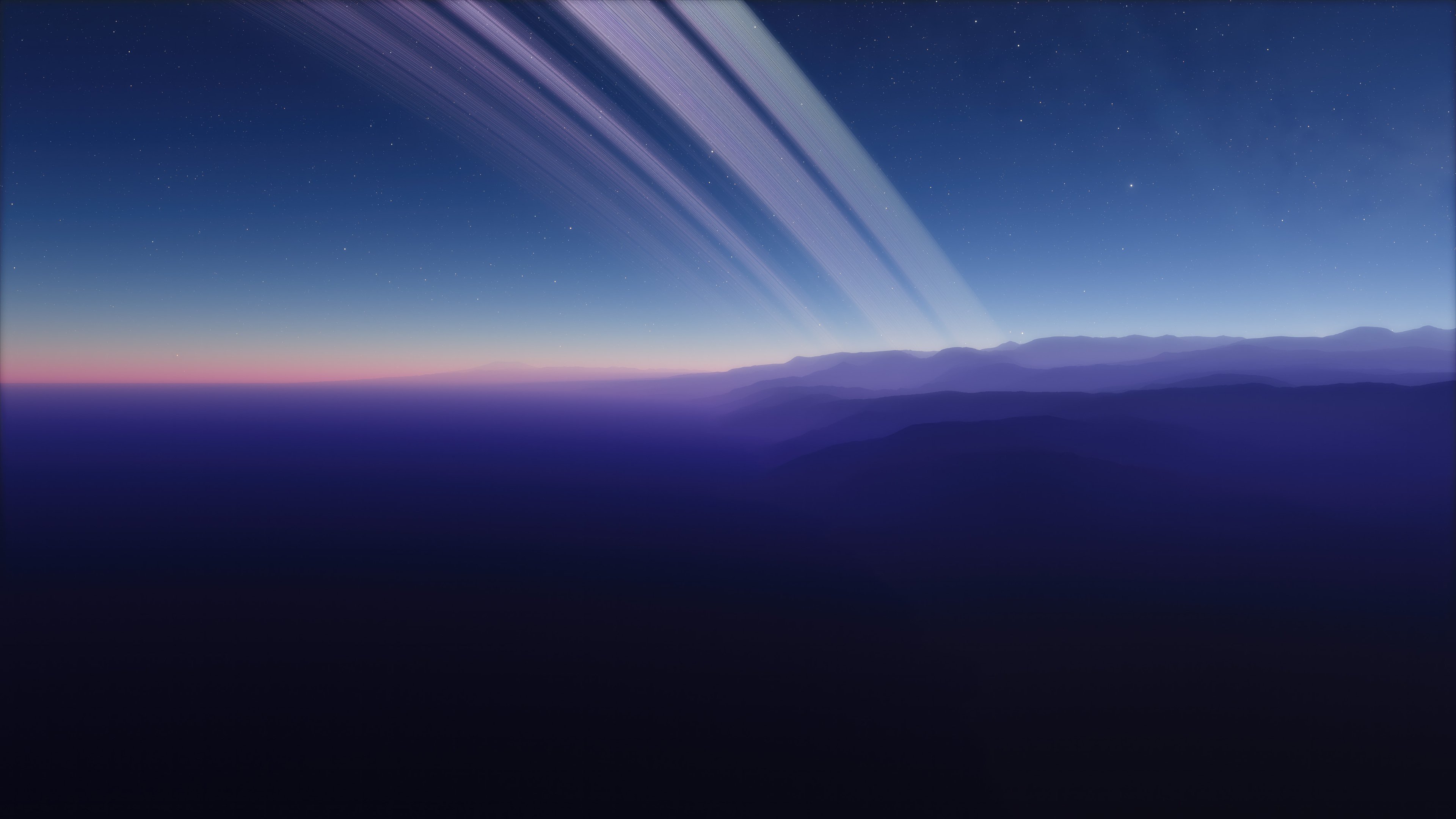 Saturn, Rings, Planet, Mountains 4K Wallpaper Background with a maximum resolution of 3840x2160 px.