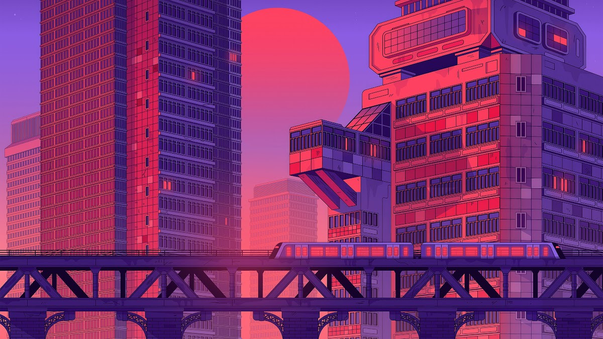 Retrowave, Cityscape, Buildings, Sunset 4K Desktop Wallpaper
