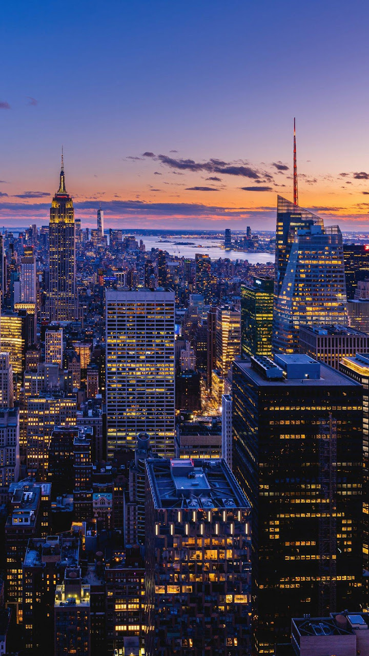 Manhattan, Skyline, Sunset, Skyscraper 4K Phone Wallpaper