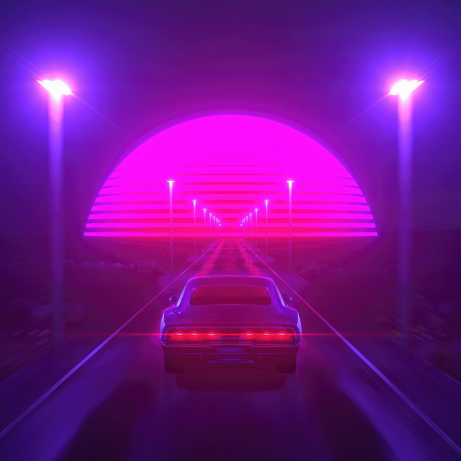 Retrowave, Synthwave, Car, Neon, Tunnel 4K Wallpaper Background with a maximum resolution of 3840x2160 px.