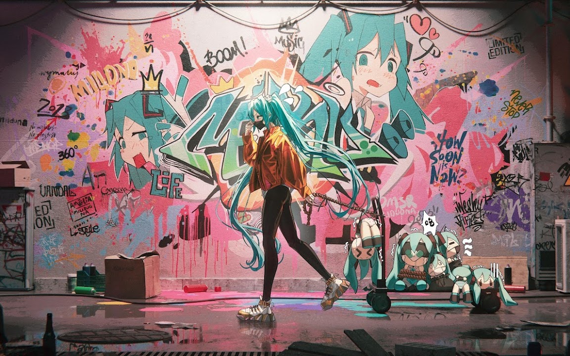 Vocaloid, Artwork, Anime, Walking, Twintails 4K Desktop Wallpaper Background with a maximum resolution of 5000x2318 px.