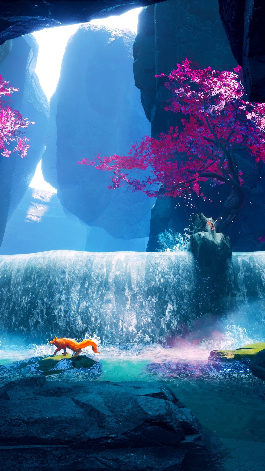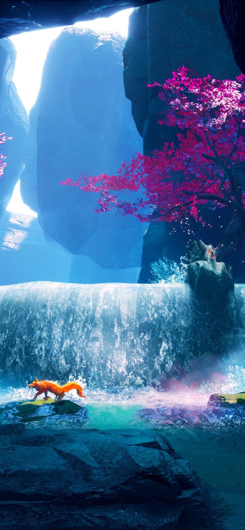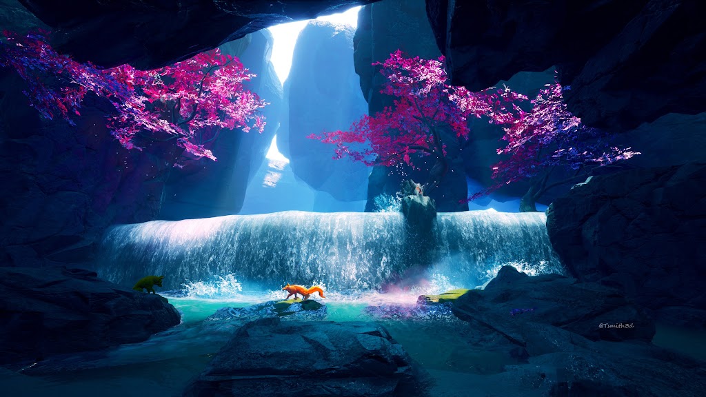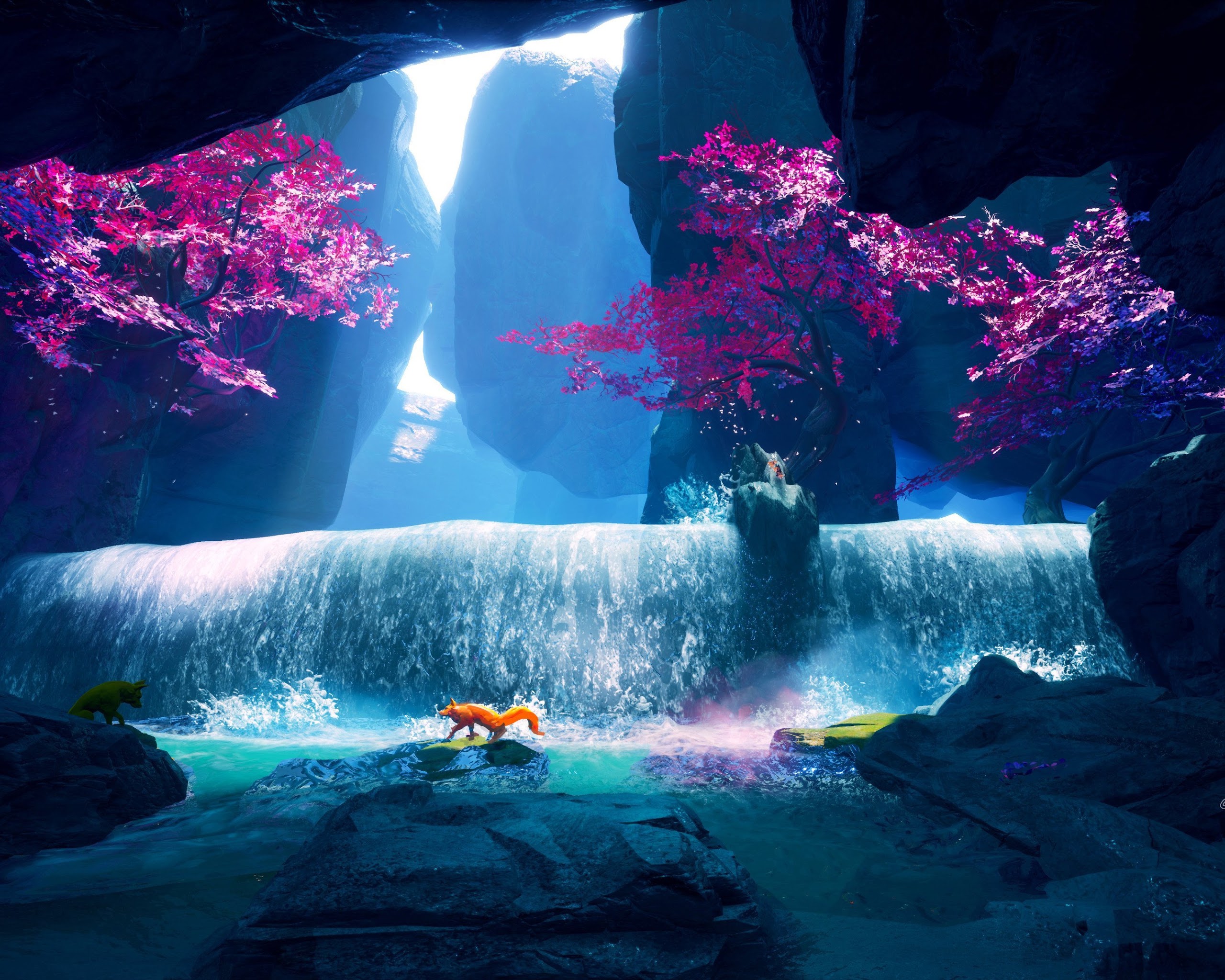 Waterfall, Fox, Water, Trees, Splashes 4K Desktop Wallpaper Background (3840x2160) Free Download