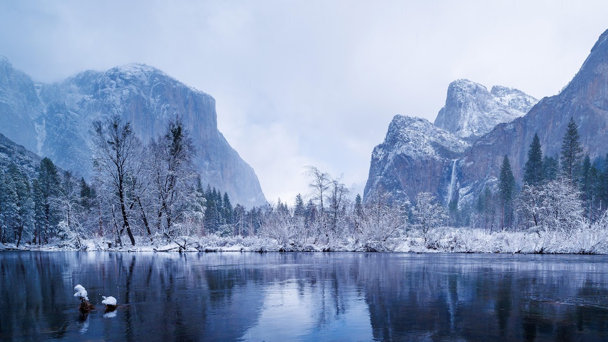 Yosemite, Winter, Mountains, Reflection 4K Desktop Wallpaper Background [3840x2160] Free Download