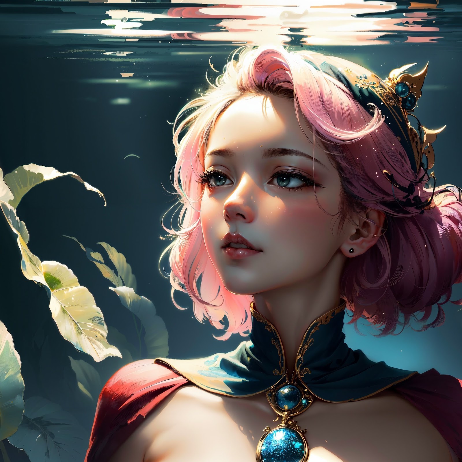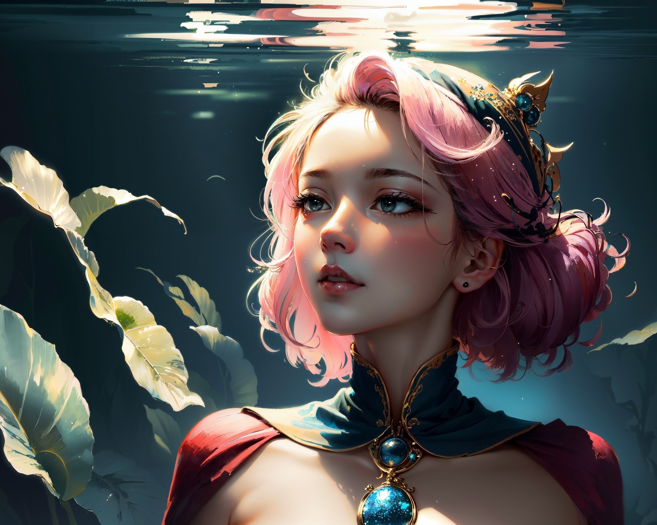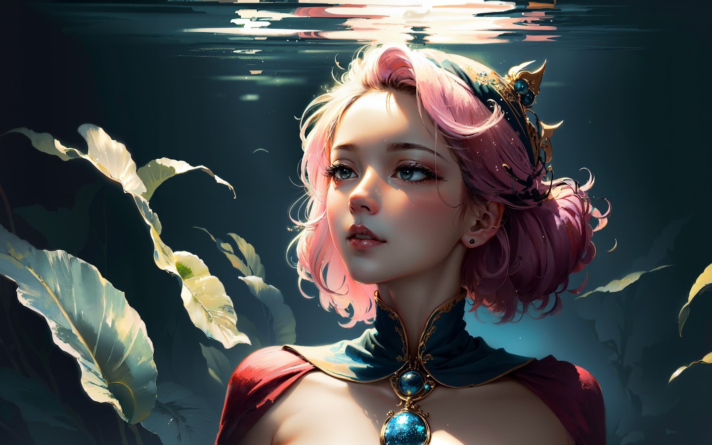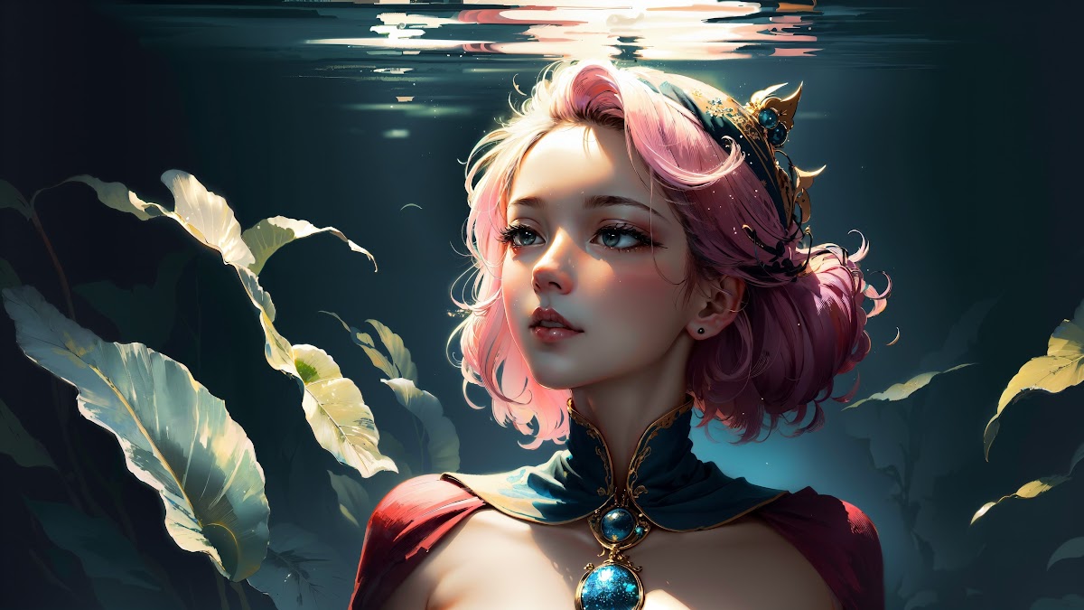 Ai Art, Portrait, Water, Pink Hair, Underwater 4K Desktop Wallpaper Background with a maximum resolution of 3840x2160 px.