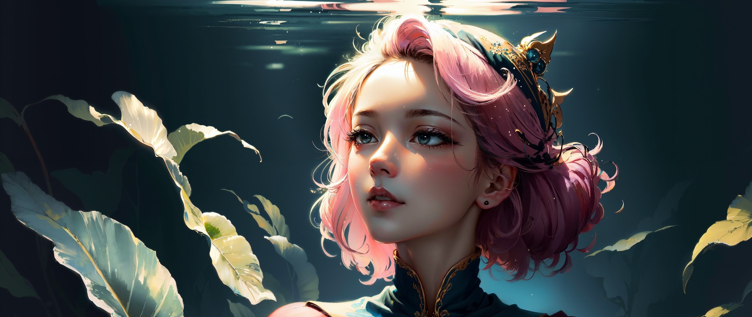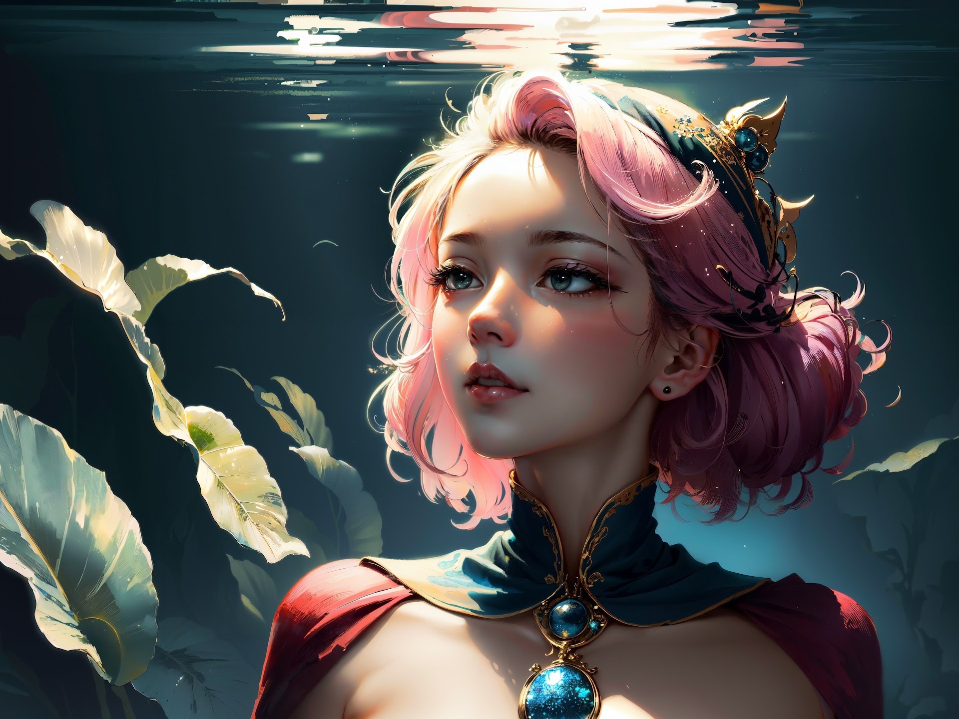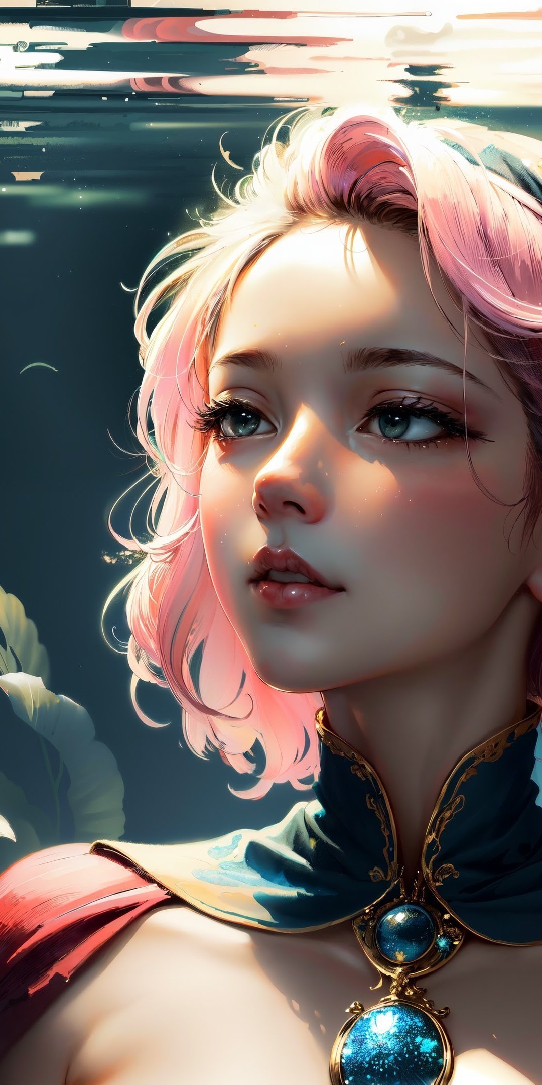 Ai Art, Portrait, Water, Pink Hair, Underwater 4K Desktop Wallpaper Background with a maximum resolution of 3840x2160 px.