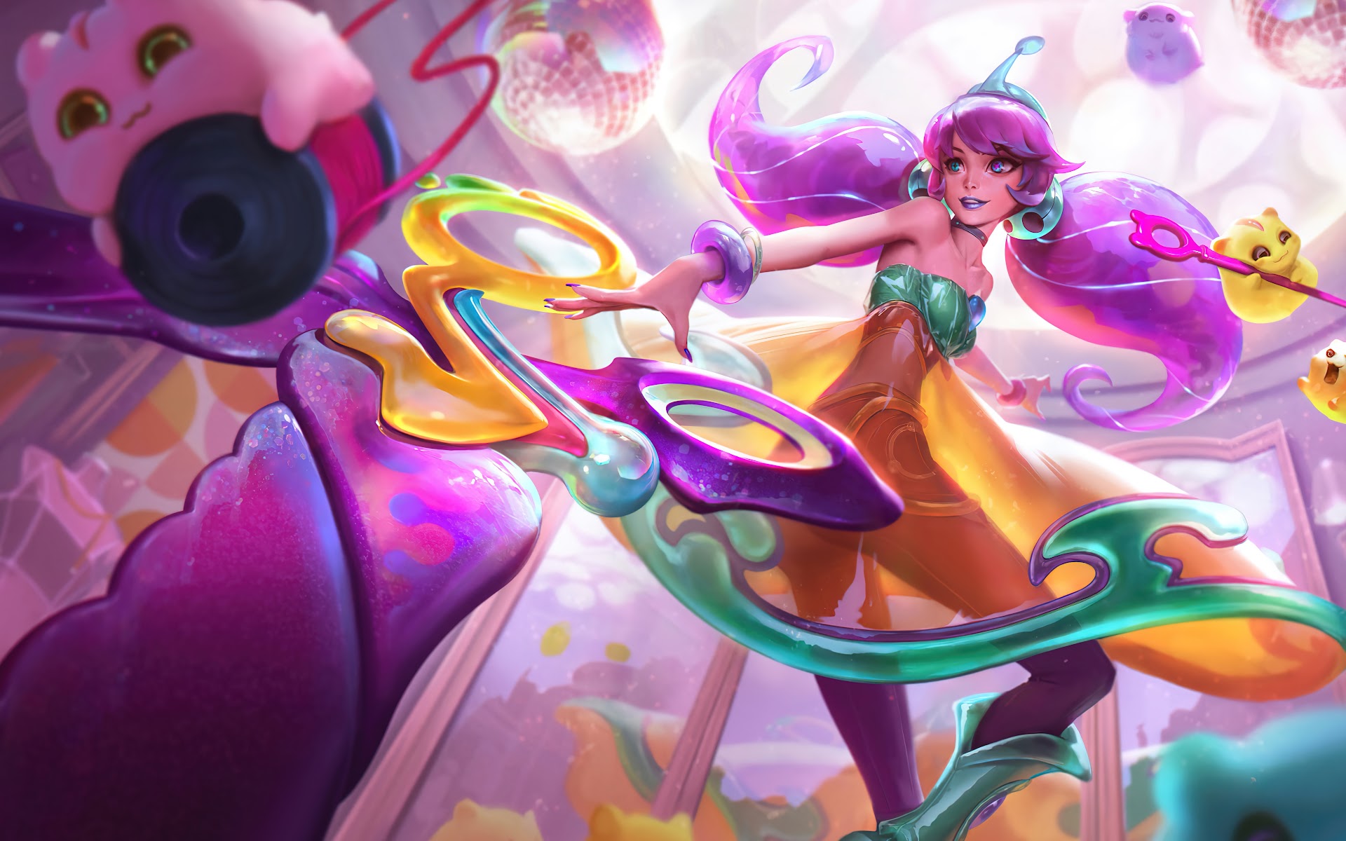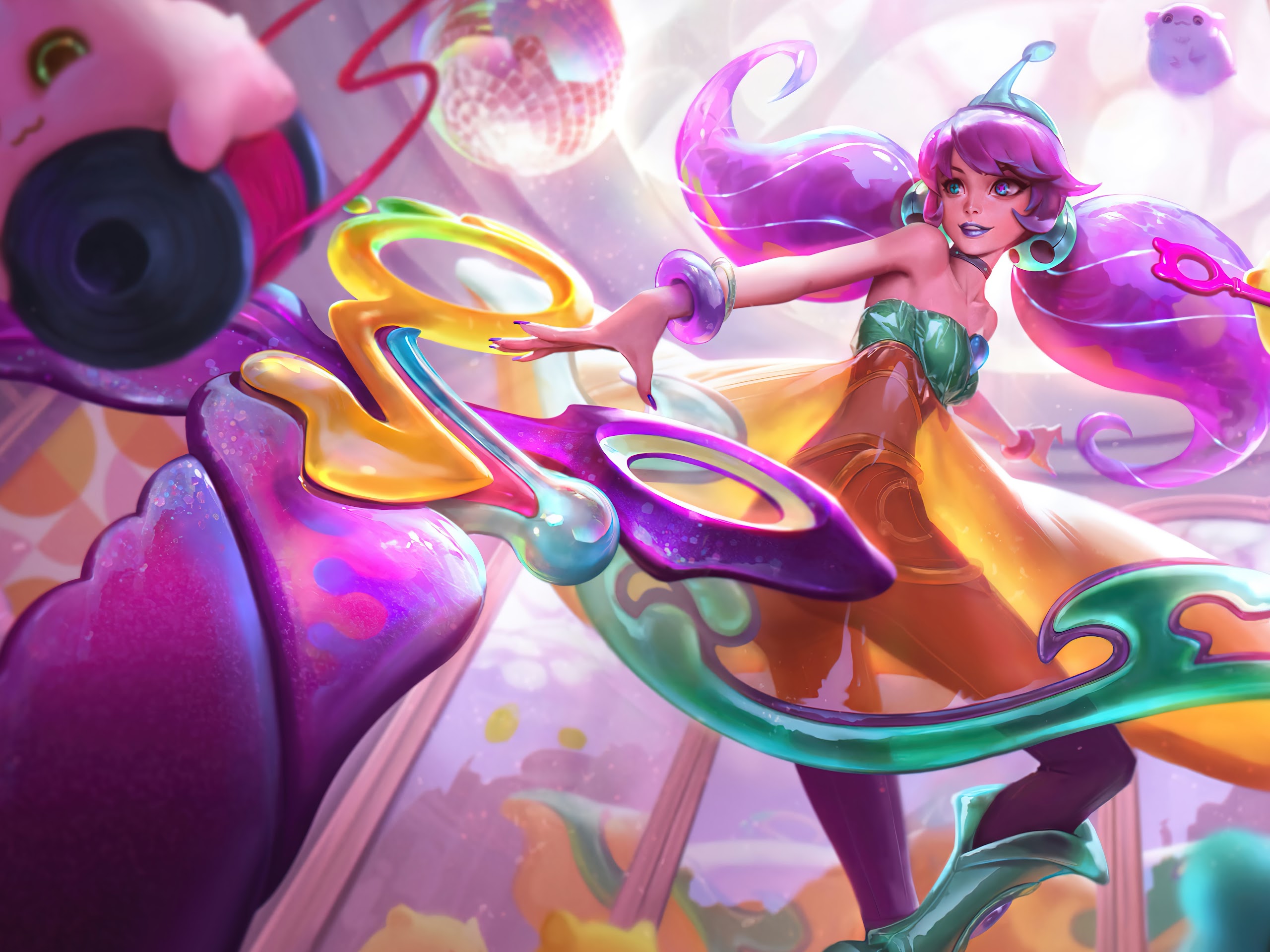 Gwen (League Of Legends), Space Groove, Michis, League Of Legends 8K Desktop Wallpaper Background with a maximum resolution of 7680x4320 px.