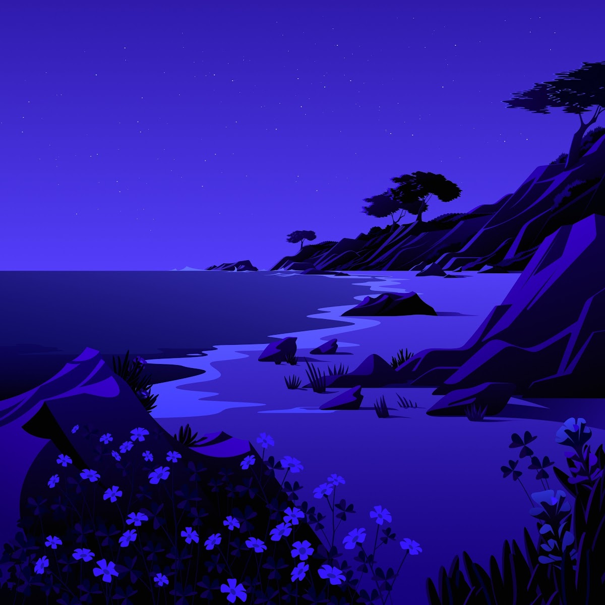 Nightscape, Seascape, Vector, Illustration 2K iPhone Wallpaper Background with a maximum resolution of 3072x3072 px.