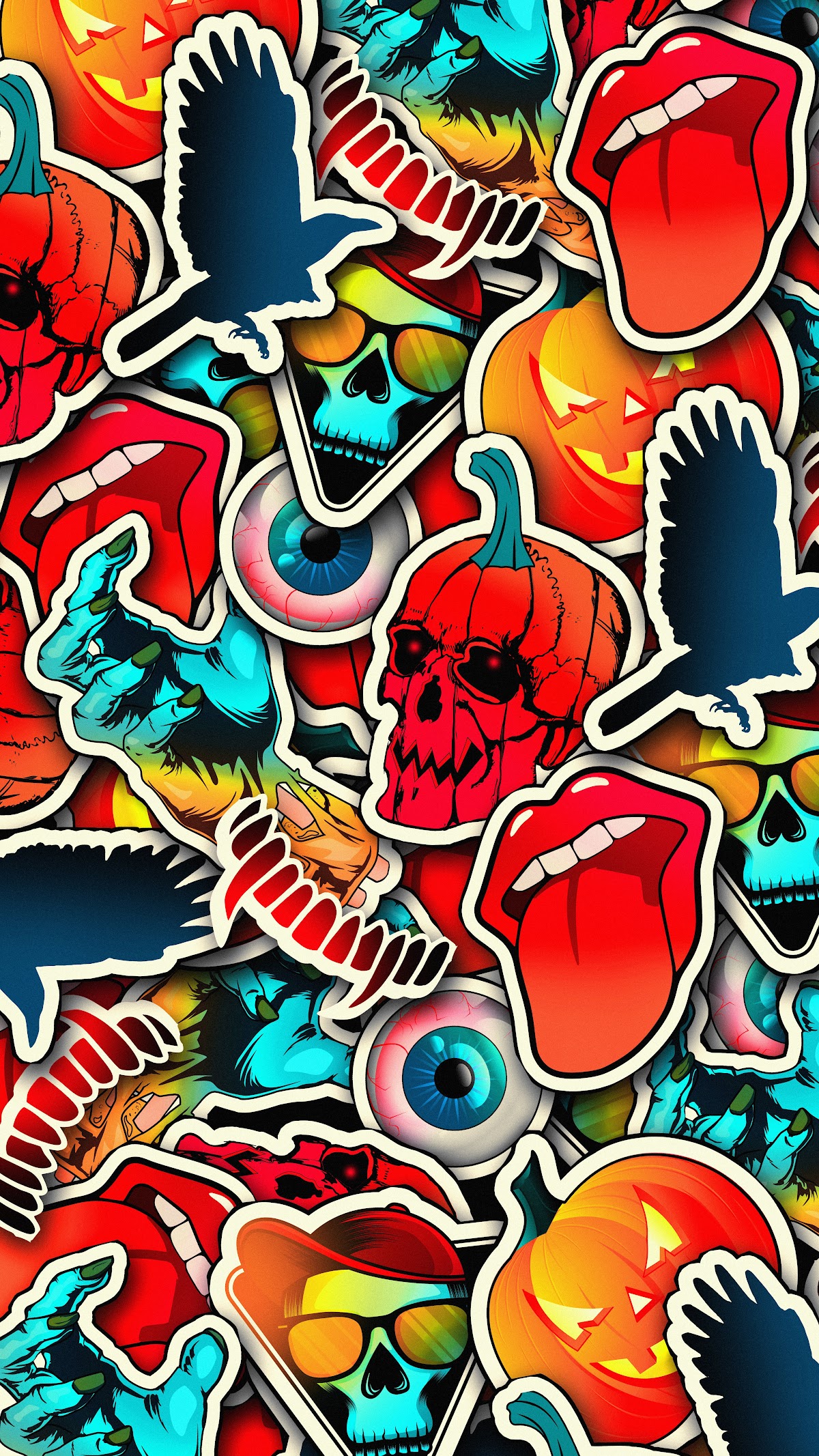 Halloween, Stickers, Pumpkins, Skulls 8K iPhone Wallpaper for Free Download in High Quality [4320x7680]