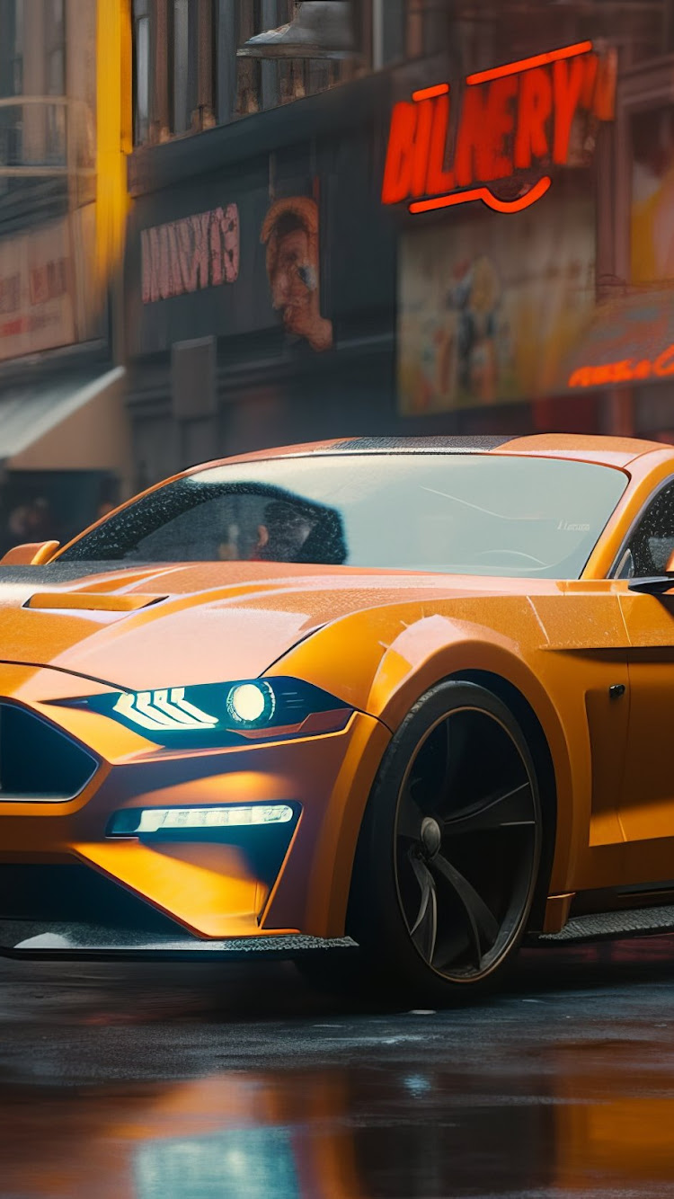 Ai Art, Ford, Orange, Sports Car, Street 2K Desktop Wallpaper