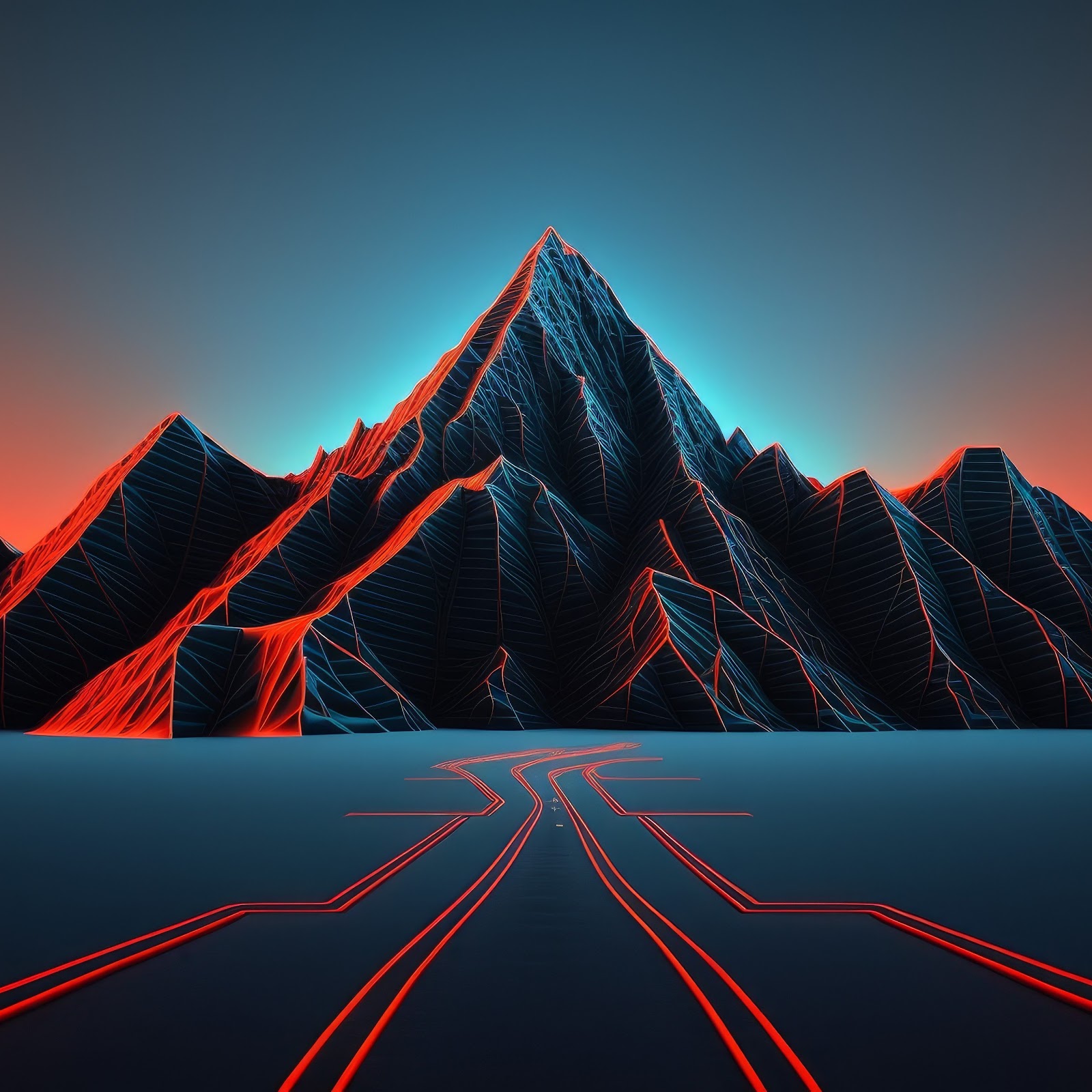 Ai Art, Illustration, Mountains, Synthwave, Simple Background 4K Desktop and Mobile Wallpaper Background with a maximum resolution of 4579x2616 px.