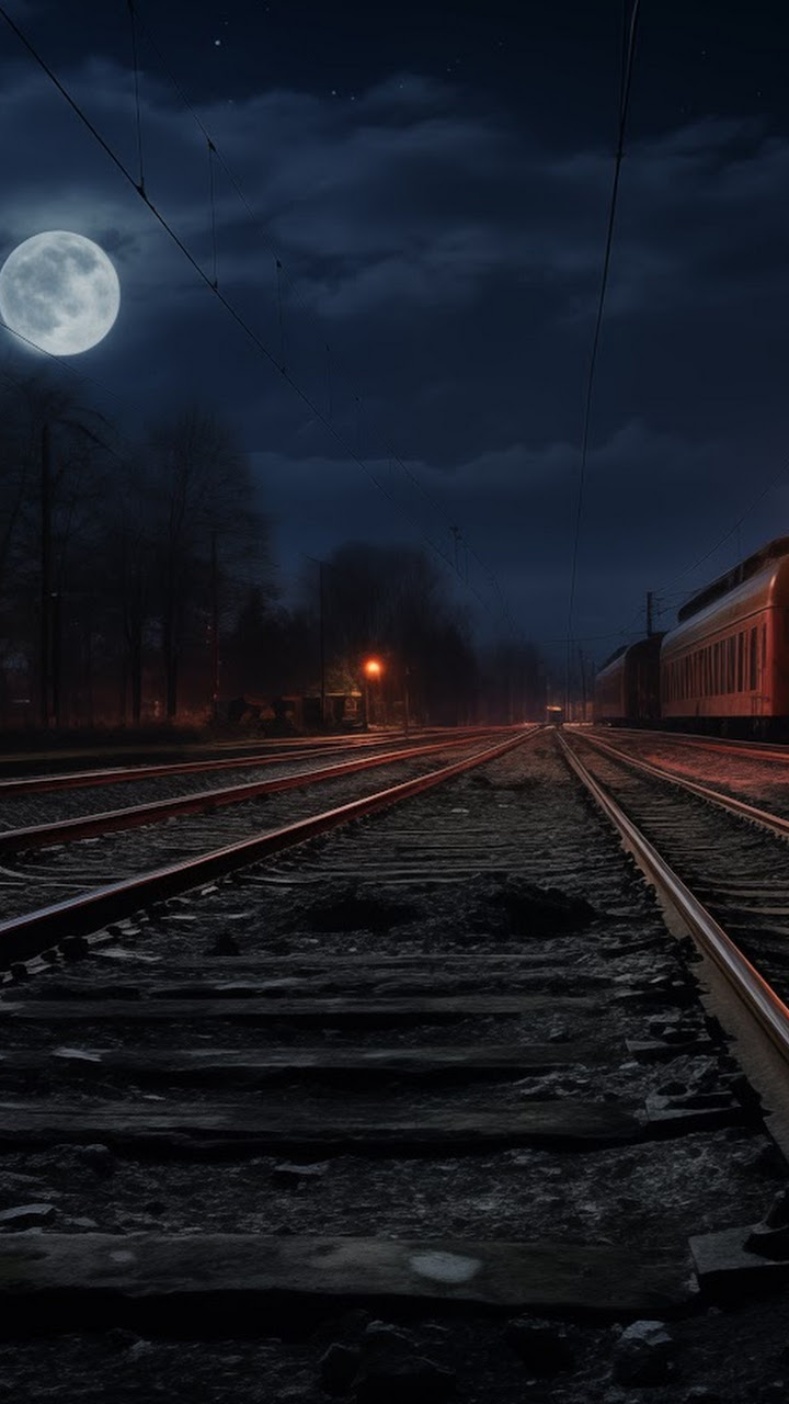 Ai Art, Illustration, Railway, Tracks, Train 5K Desktop and Mobile Wallpaper Background with a maximum resolution of 5824x3264 px.