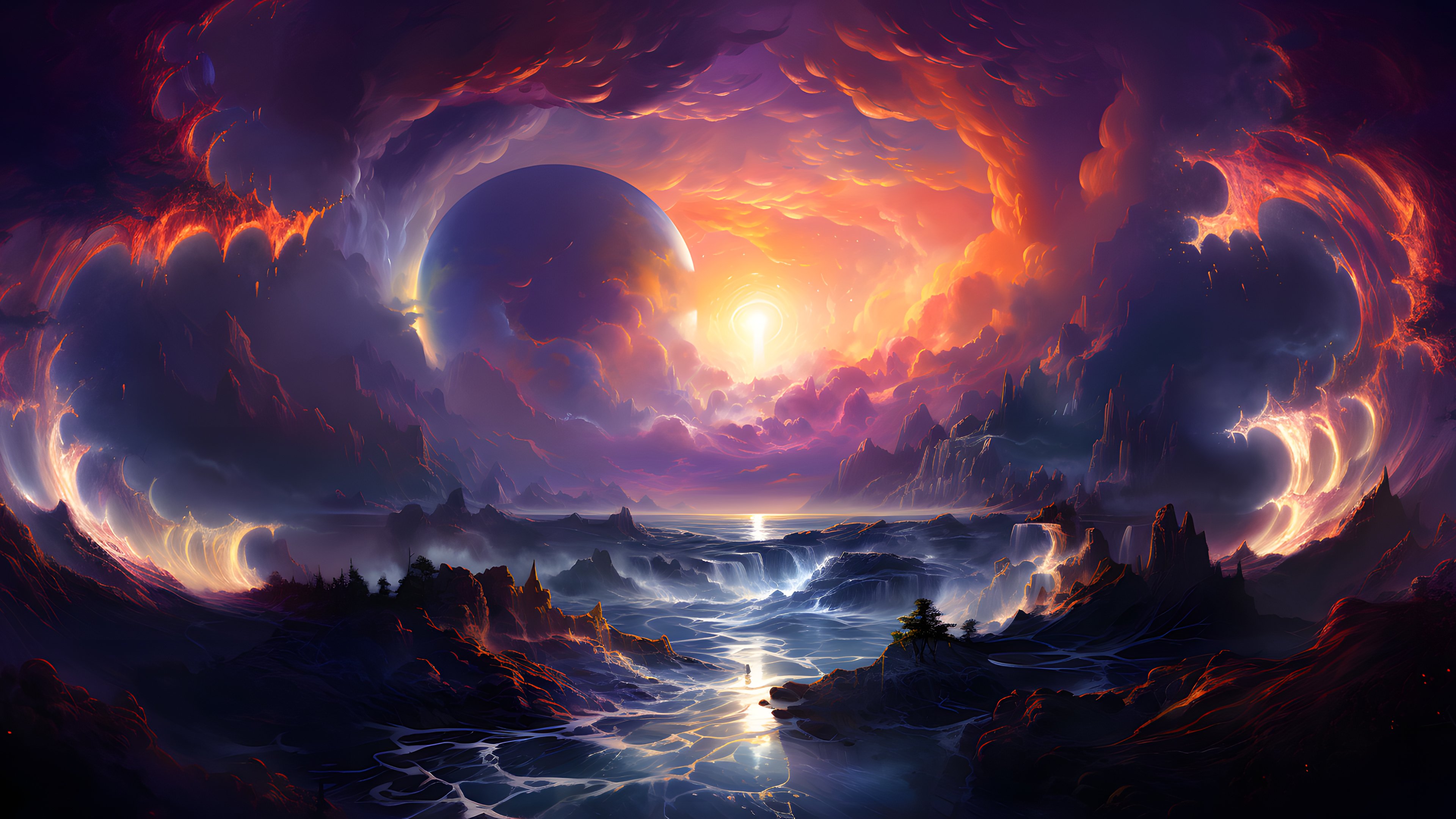 Ai Art, Landscape, Digital Art, Water, Planet 4K Desktop and Mobile Wallpaper Background with a maximum resolution of 3840x2160 px.