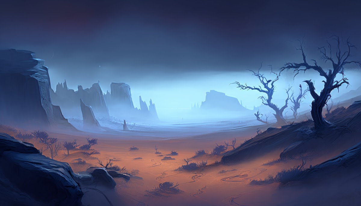 Ai Art, Landscape, Illustration, Wasteland, Nature 4K Desktop and Mobile Wallpaper Background with a maximum resolution of 4579x2616 px.