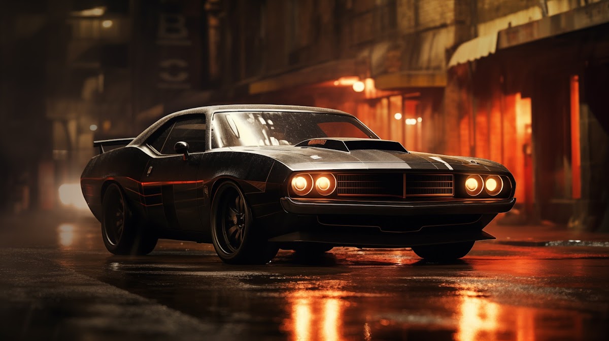 Ai Art, Muscle Cars, Street, Orange, Car 5K Desktop Wallpaper