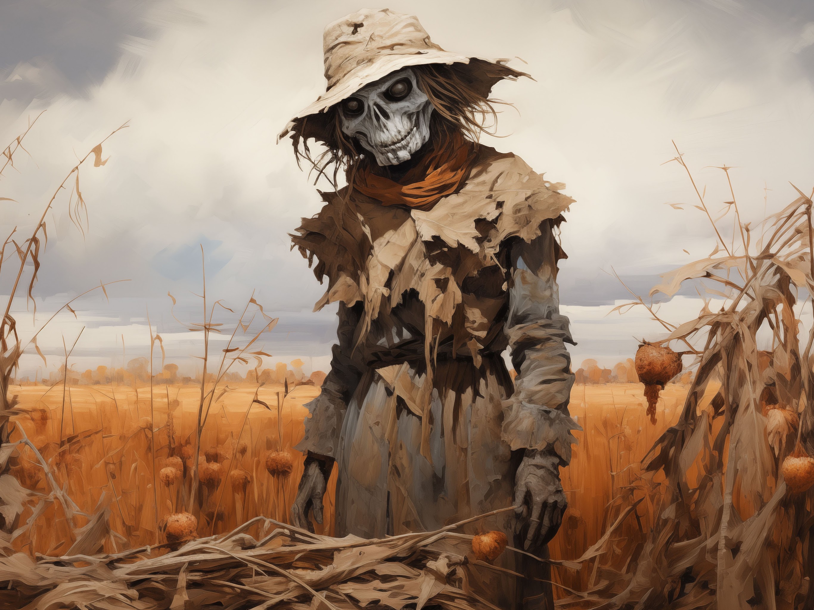 Ai Art, Orange, Scarecrows, Hat, Field 5K Desktop and Mobile Wallpaper Background with a maximum resolution of 5824x3264 px.