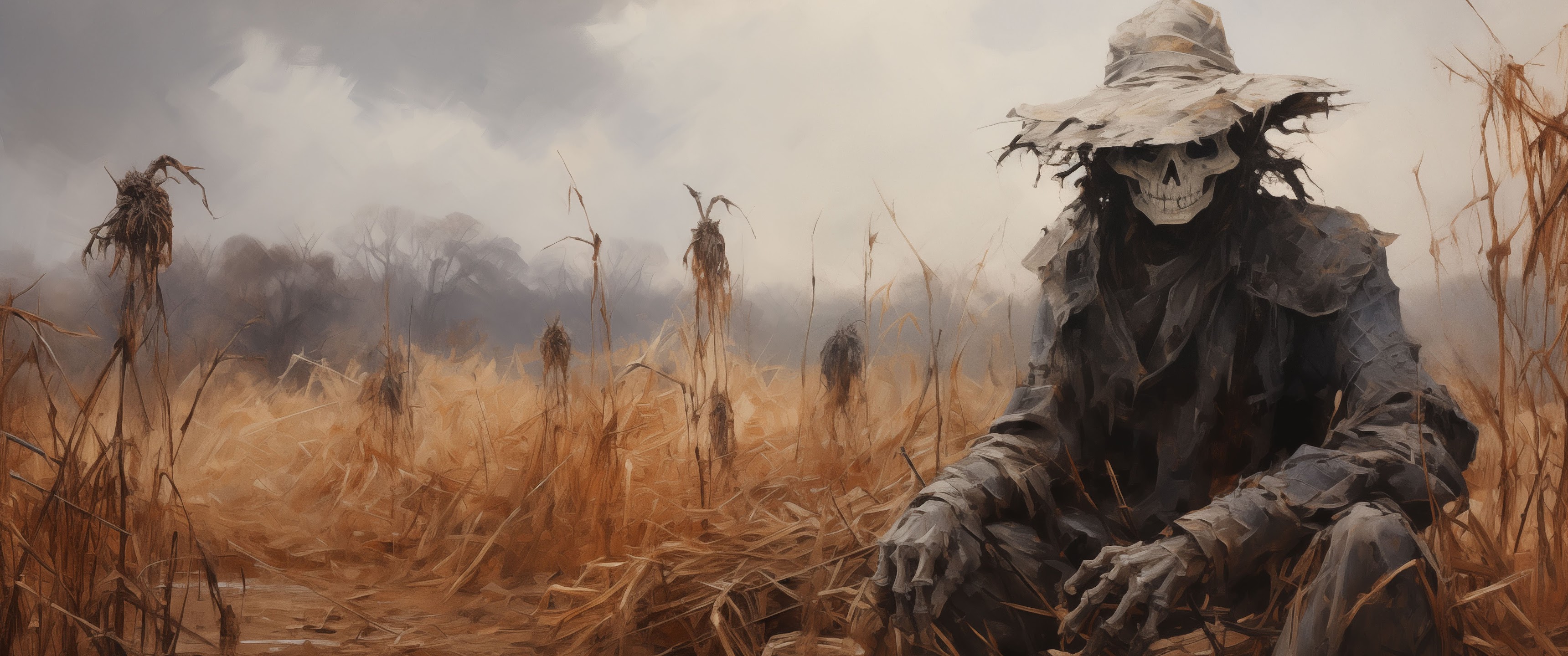 Ai Art, Orange, Scarecrows, Hat, Field 5K Desktop and Mobile Wallpaper Background with a maximum resolution of 5824x3264 px.