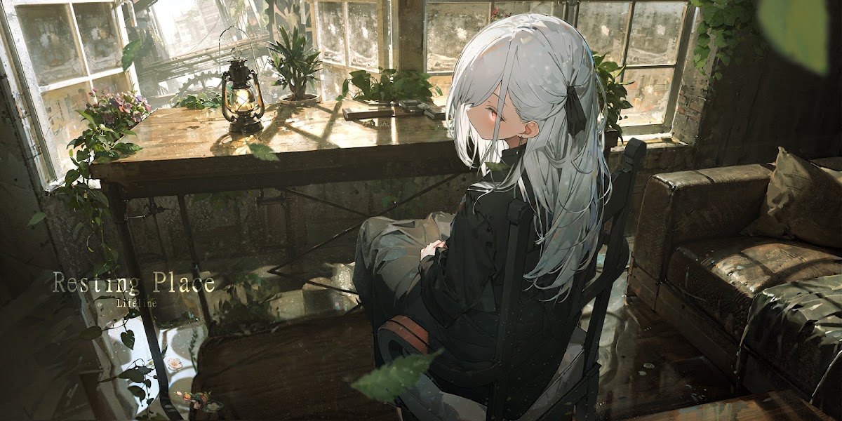 Anime, Girl, Overgrown, Lamp, Solarpunk 5K Desktop Wallpaper