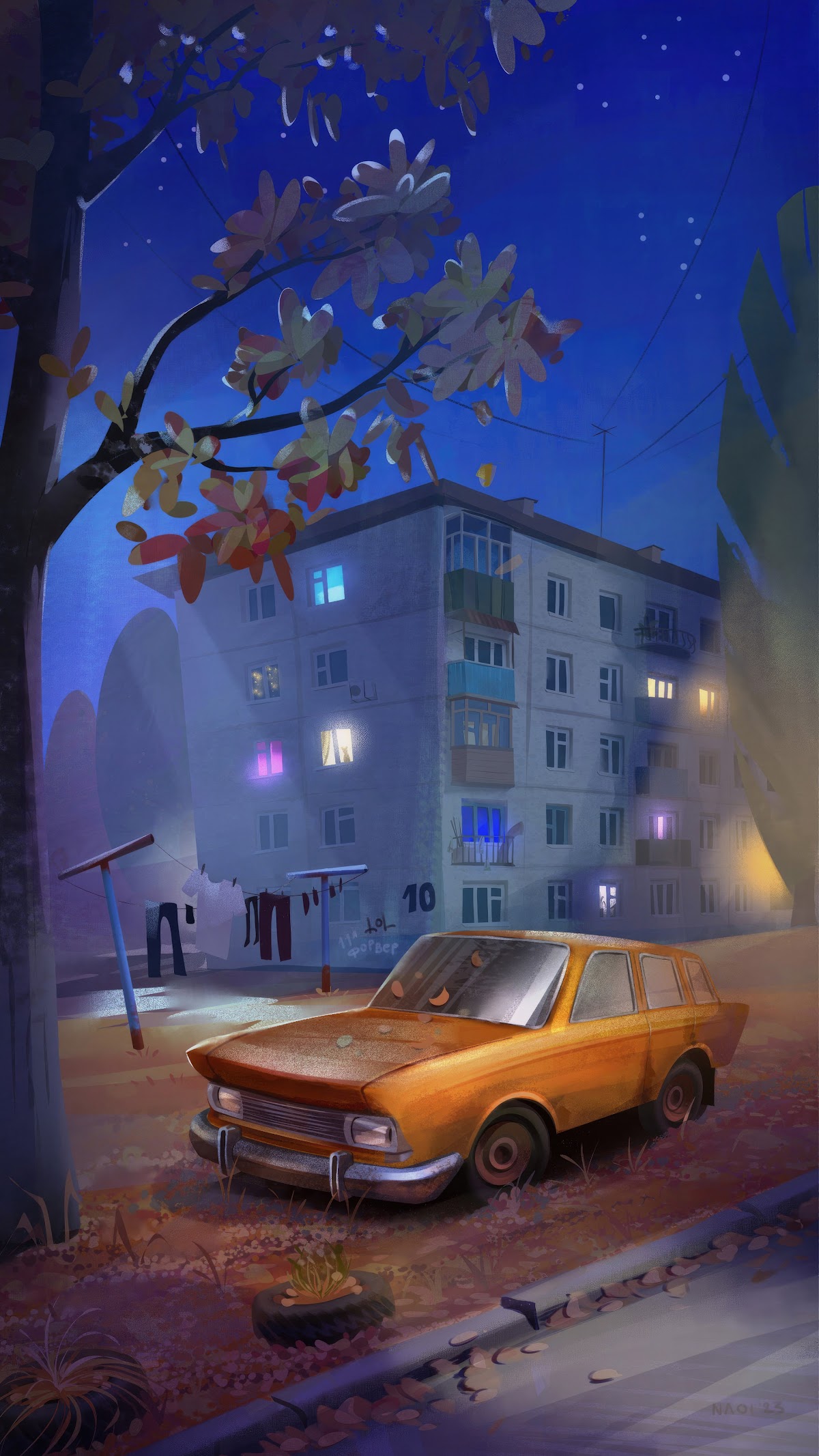 Moskvich, Night, Soviet, Car, Artwork 4K iPhone Wallpaper for Free Download in High Quality [2160x3840]
