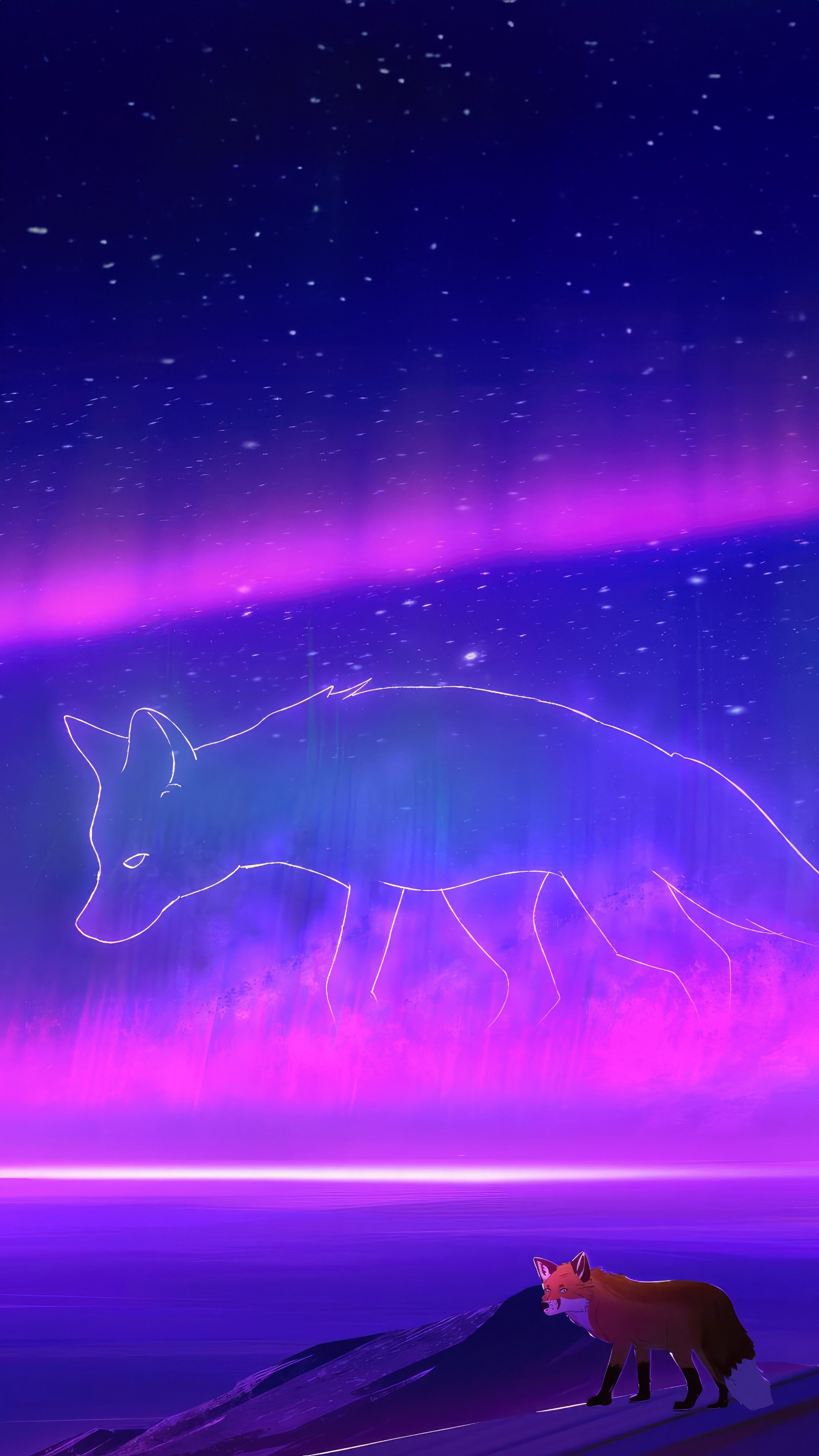 Fox, Aurora, Starlight, Neon, Fantasy 4K iPhone Wallpaper for Free Download in High Quality [2160x3840]