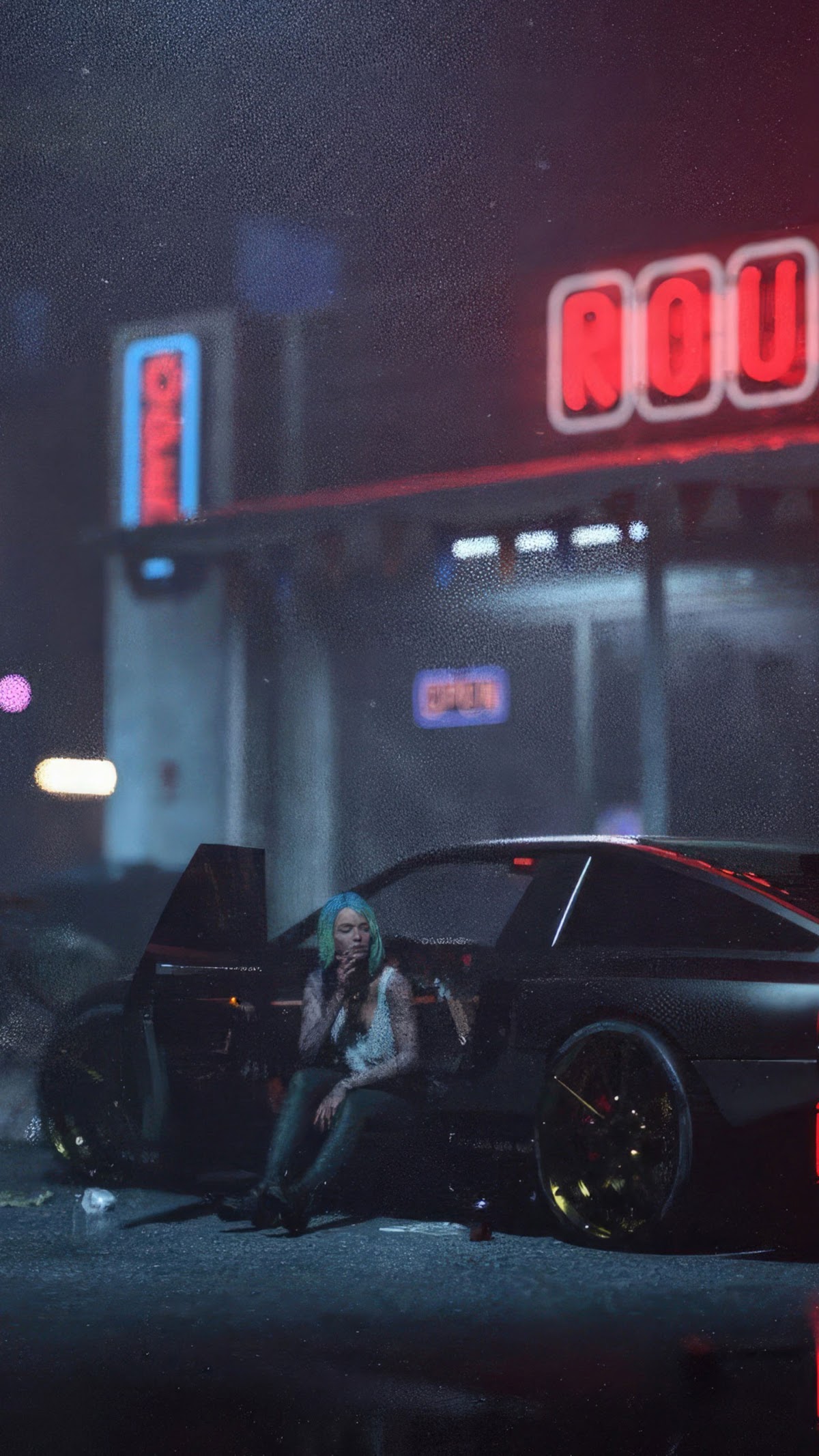 Cyberpunk, Neon, Mustang, Night 4K iPhone Phone Wallpaper