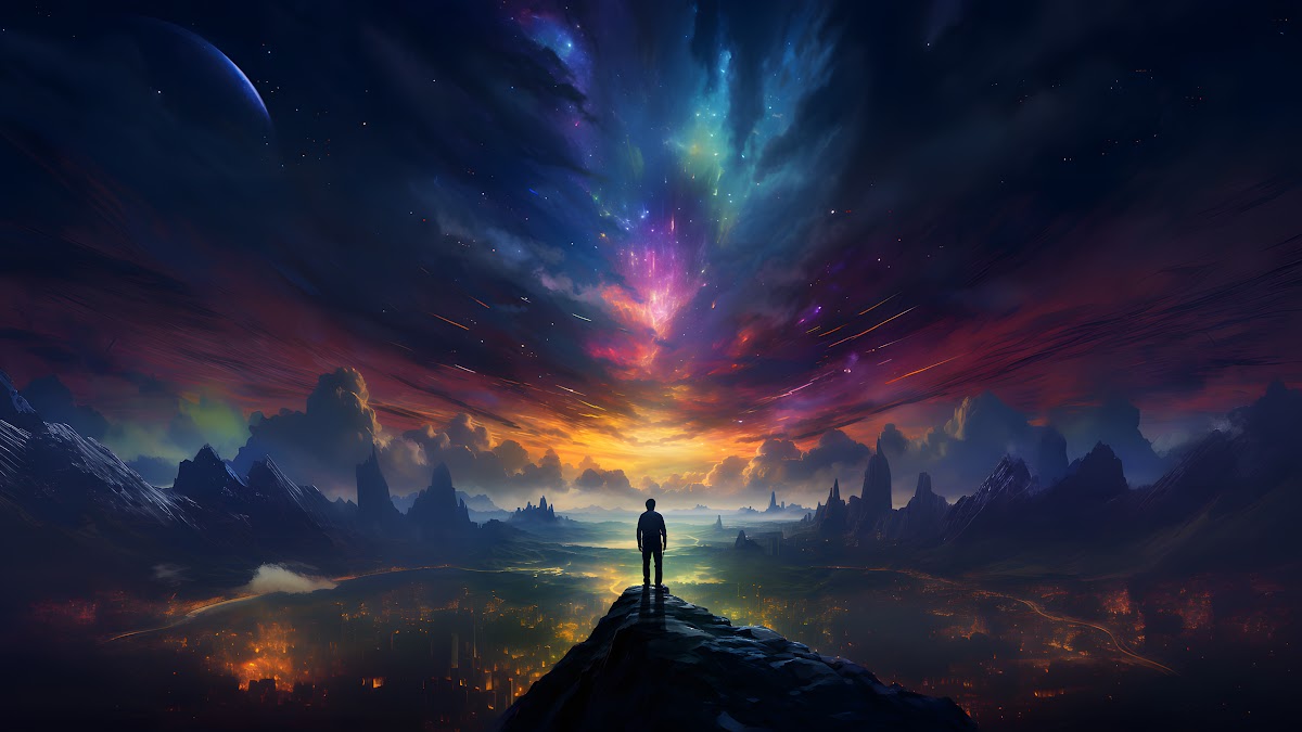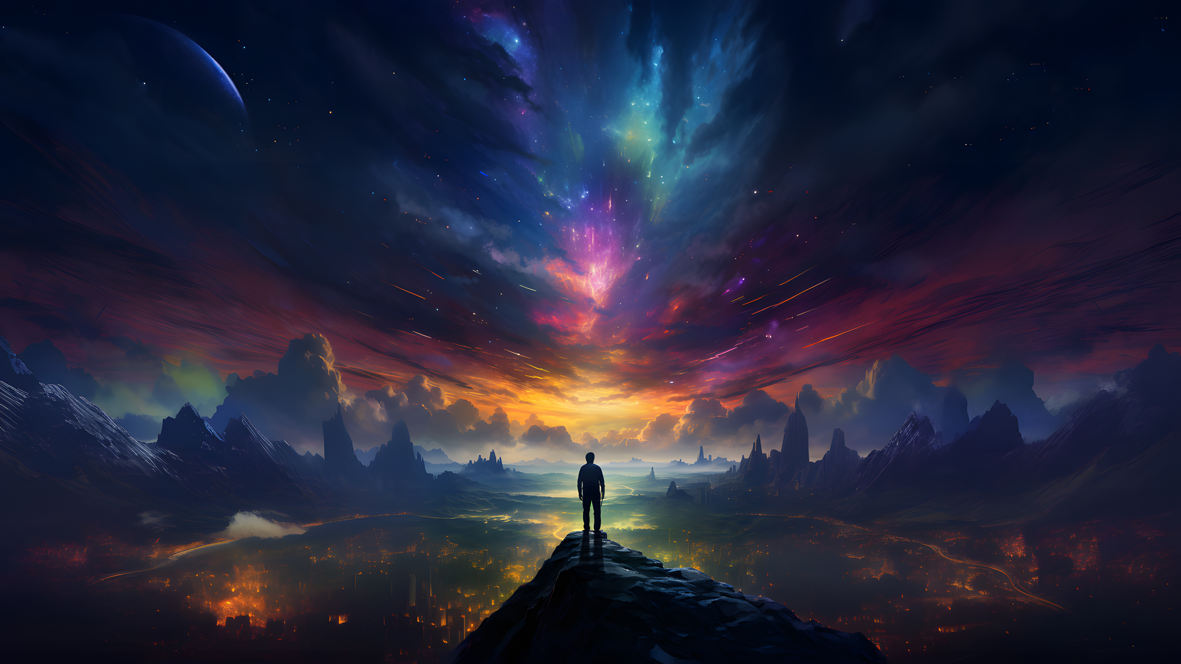 Landscape, Ai Art, Digital Art, Stars, Sky 4K Desktop and Mobile Wallpaper Background with a maximum resolution of 3840x2160 px.