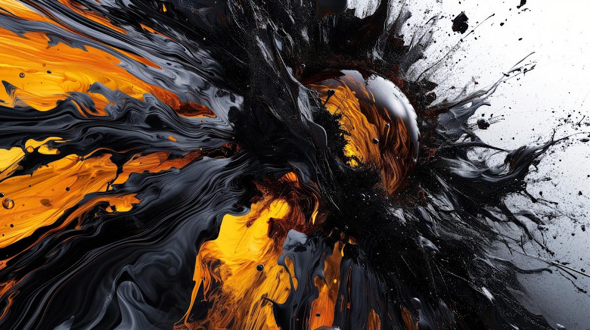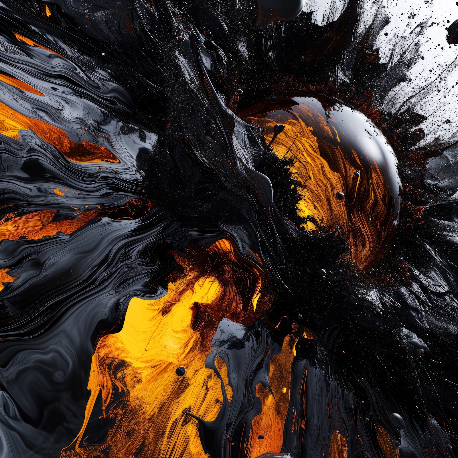 Ai Art, Illustration, Amber, Black, Paint Splash 5K Desktop Wallpaper