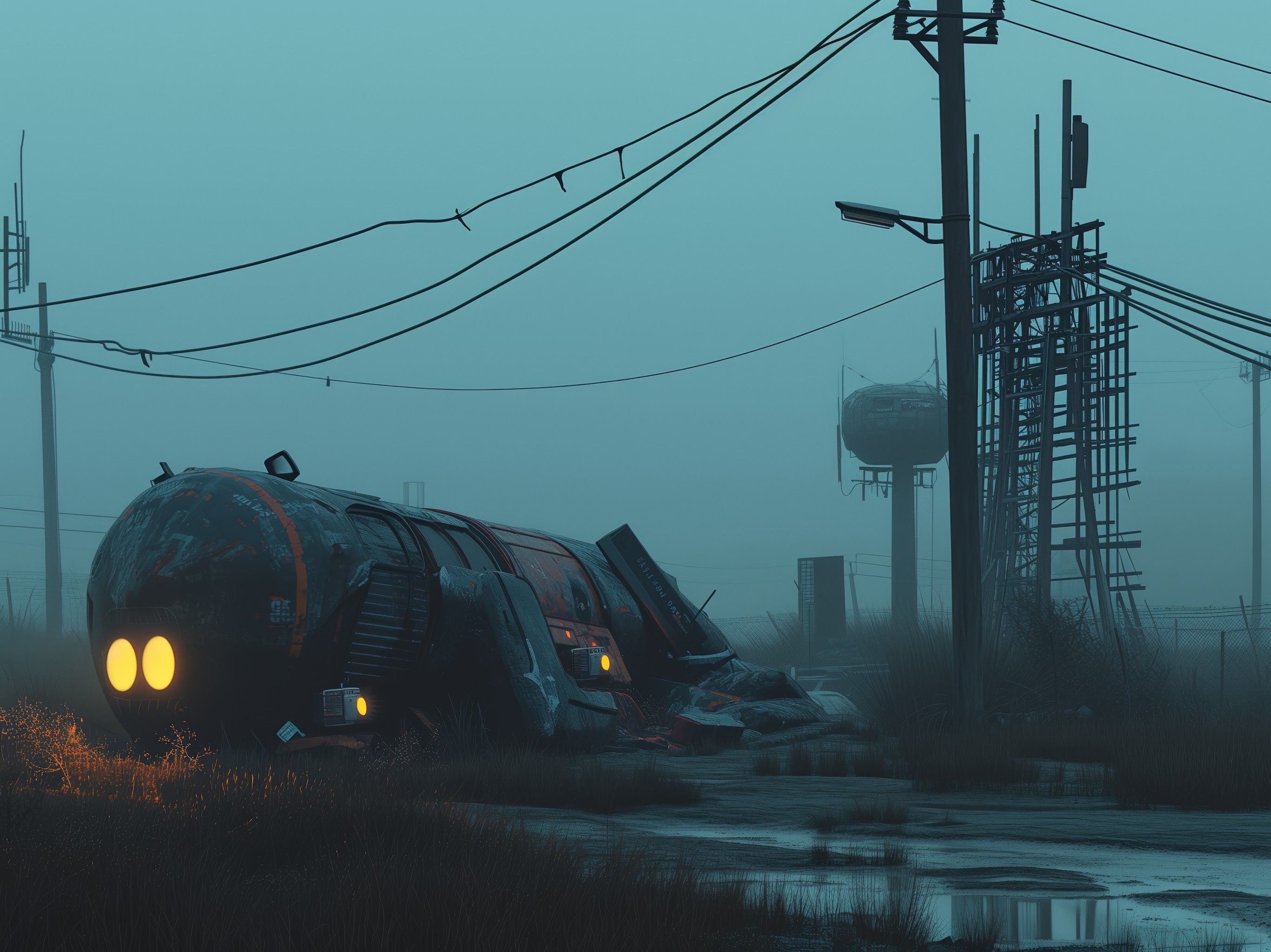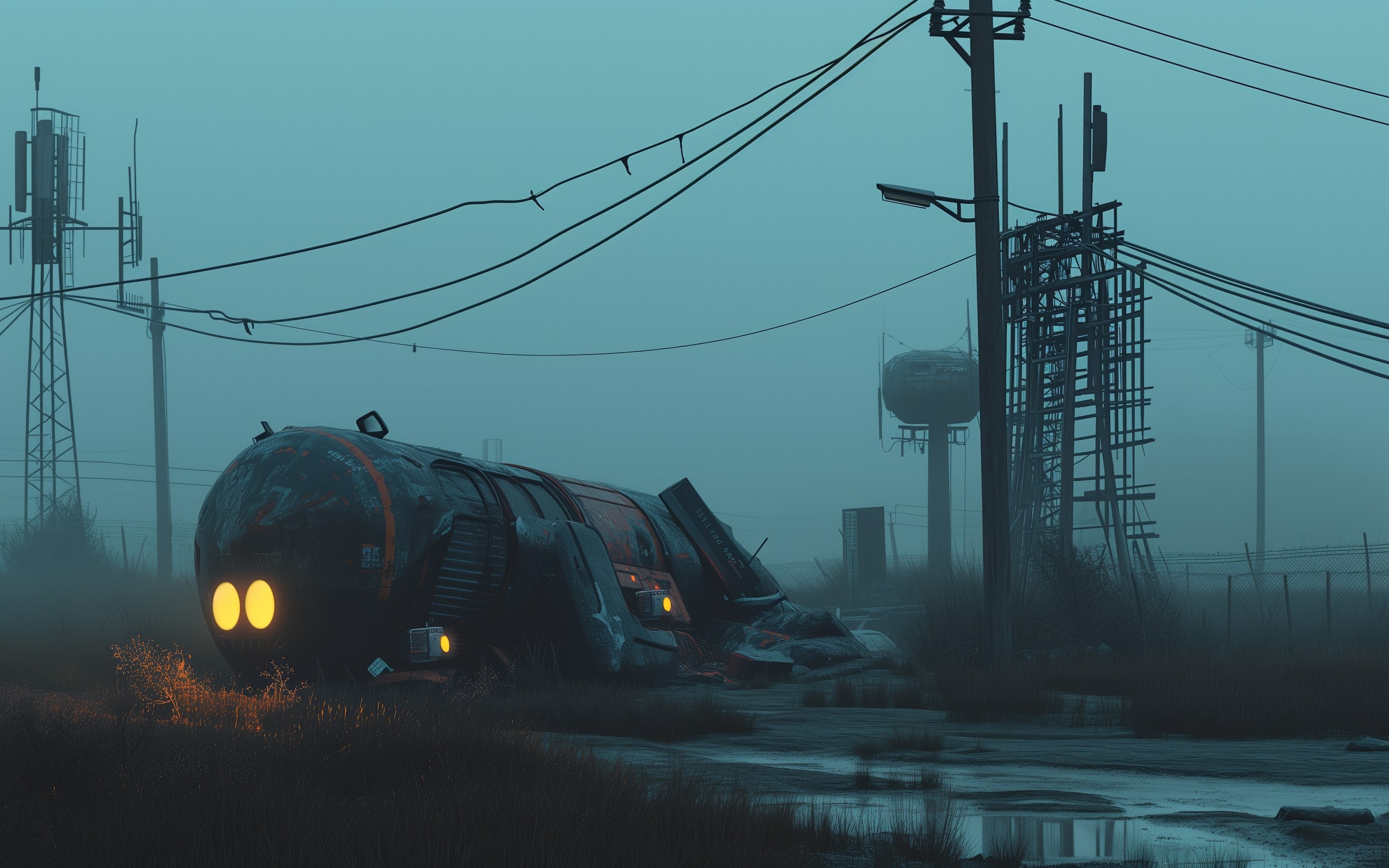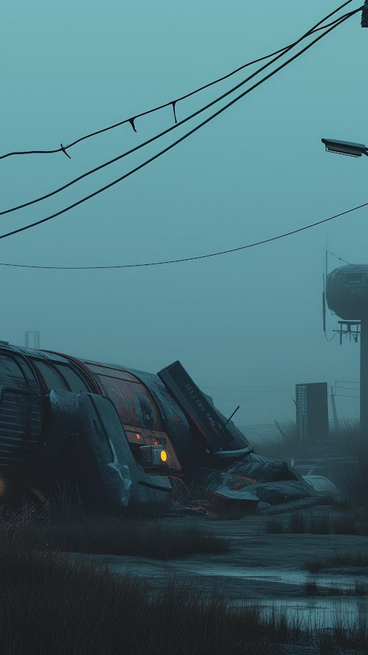 A Stunning Ai Art, Illustration, Dark, Rural, Cyberpunk 5K Desktop and Mobile Wallpaper Background (5824x3264)
